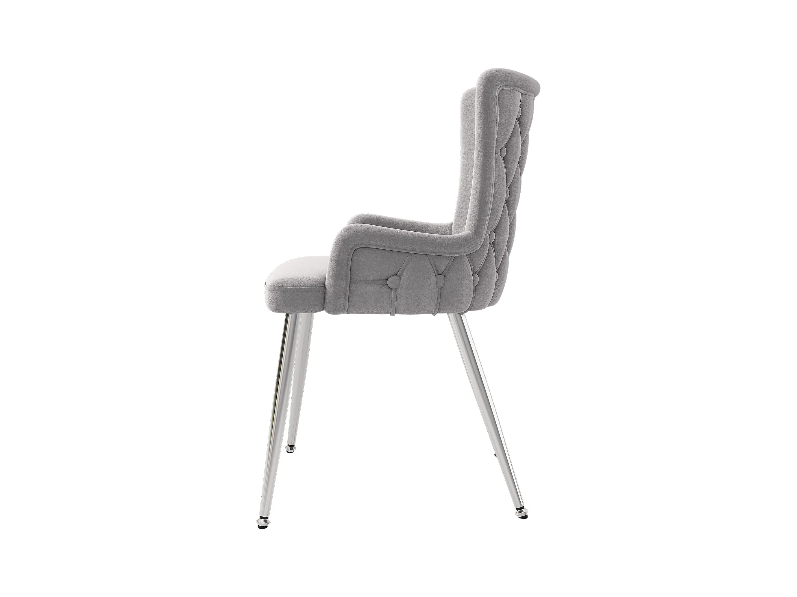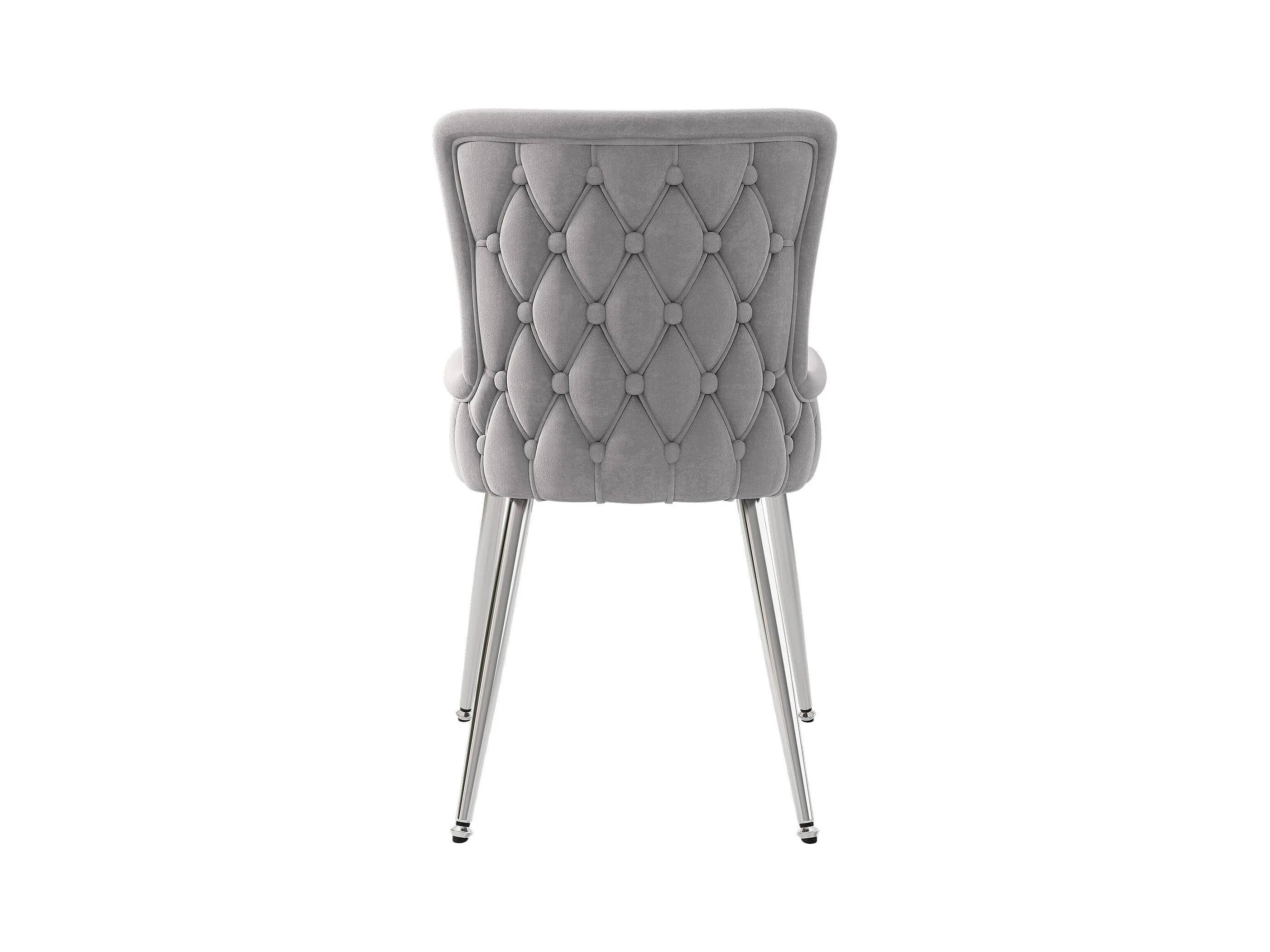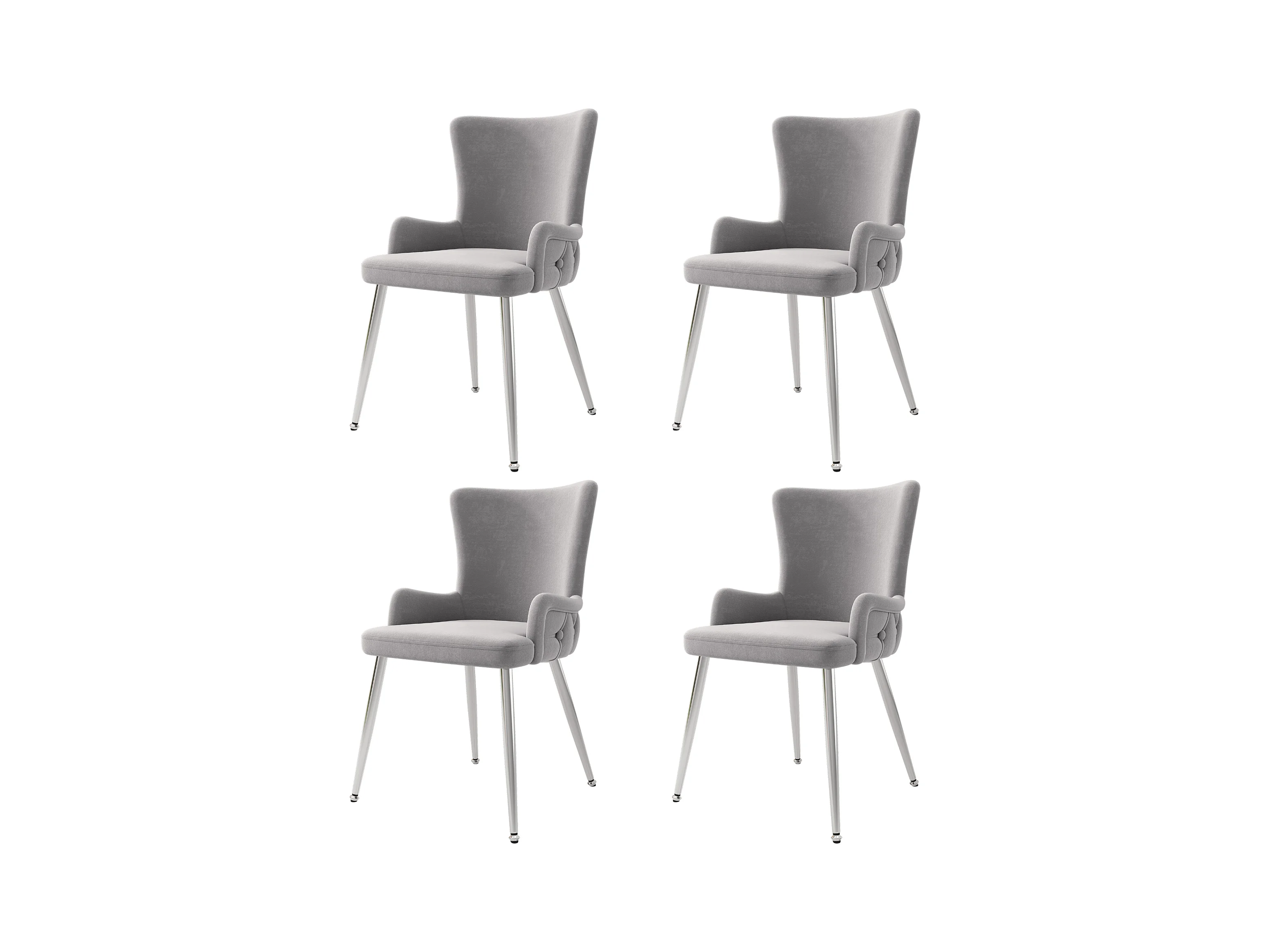 Juego de 4 sillas de terciopelo gris con respaldo tapizado y patas de metal plateado - para comedores y salas
