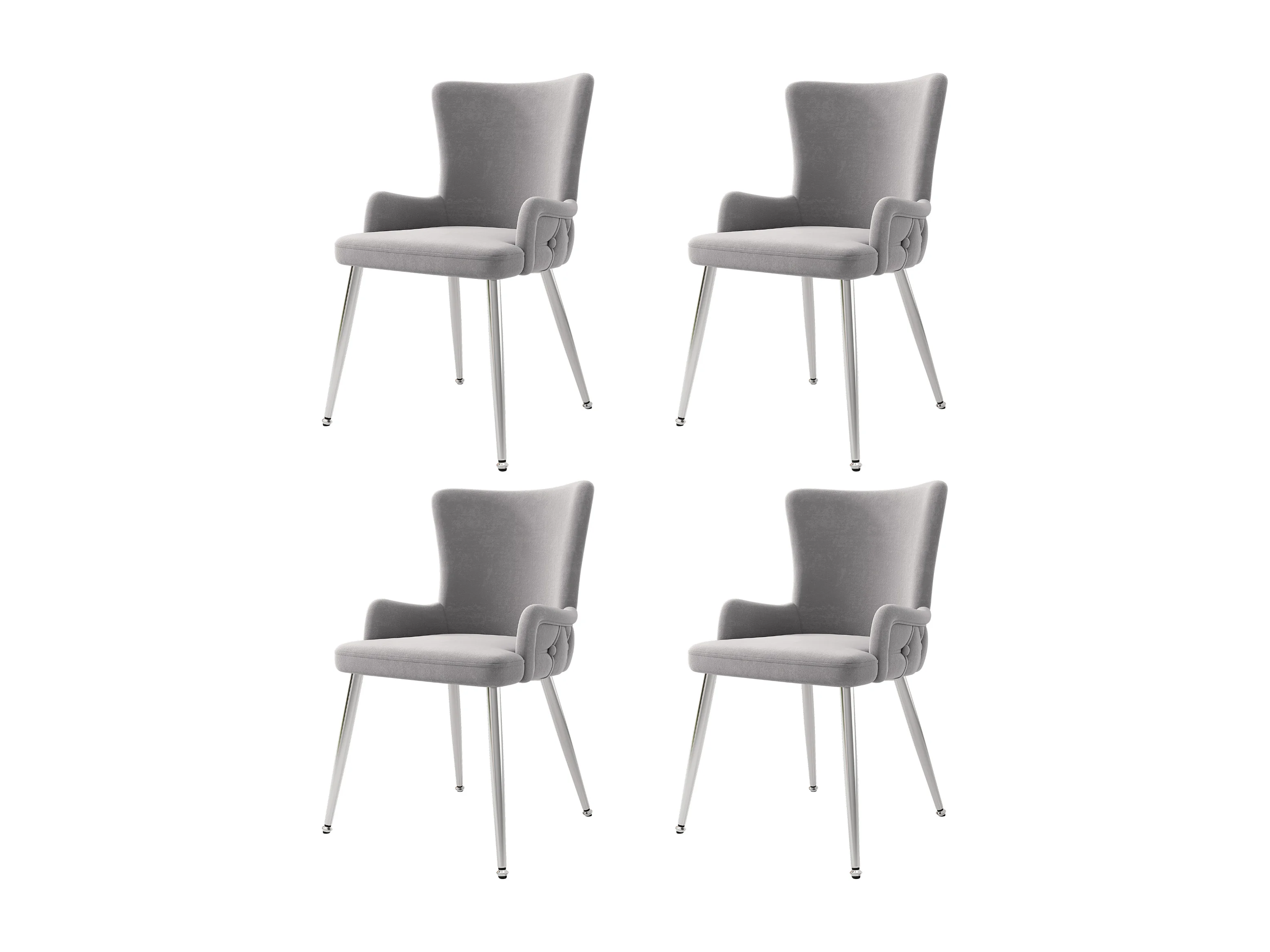 Juego de 4 sillas de comedor - terciopelo gris - patas de metal plateado - para dormitorio y comedor