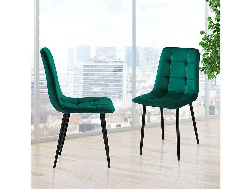 Juego de 4 sillas de comedor y cocina de terciopelo con efecto acolchado Corfù - Verde oscuro