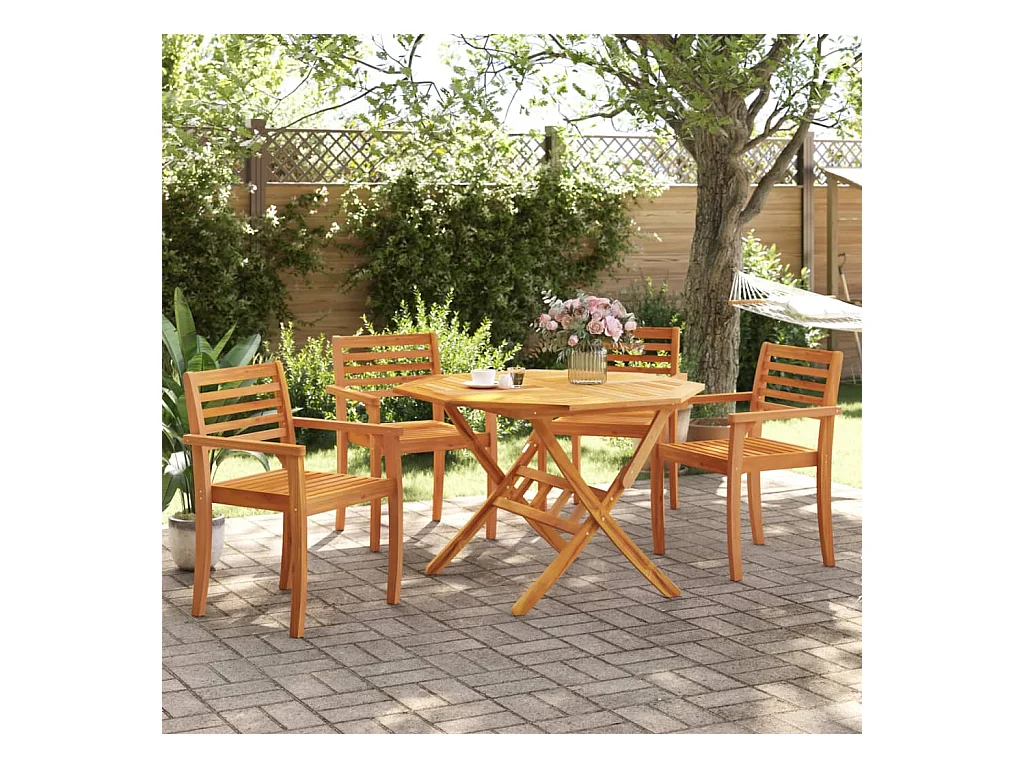 Conjunto de 4 sillas de jardín plegables de madera maciza de acacia.
