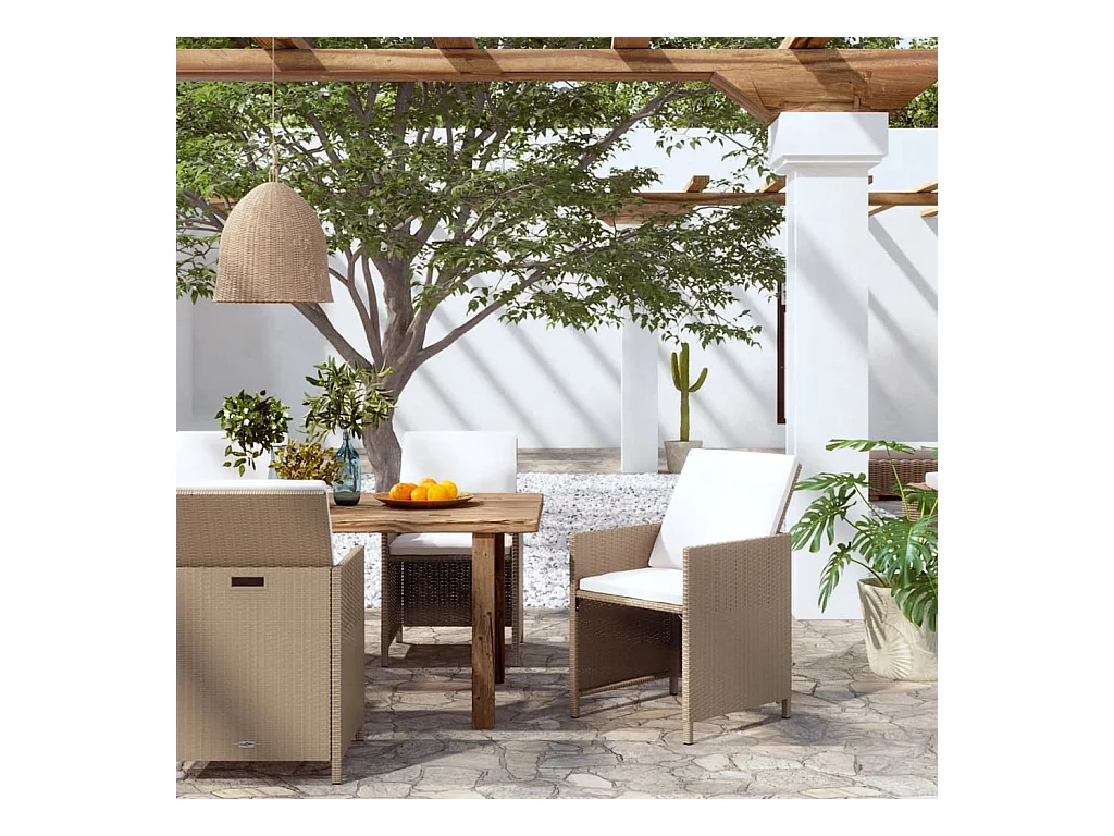Juego de 4 cojines para sillas de jardín de mimbre de resina beige y acacia.