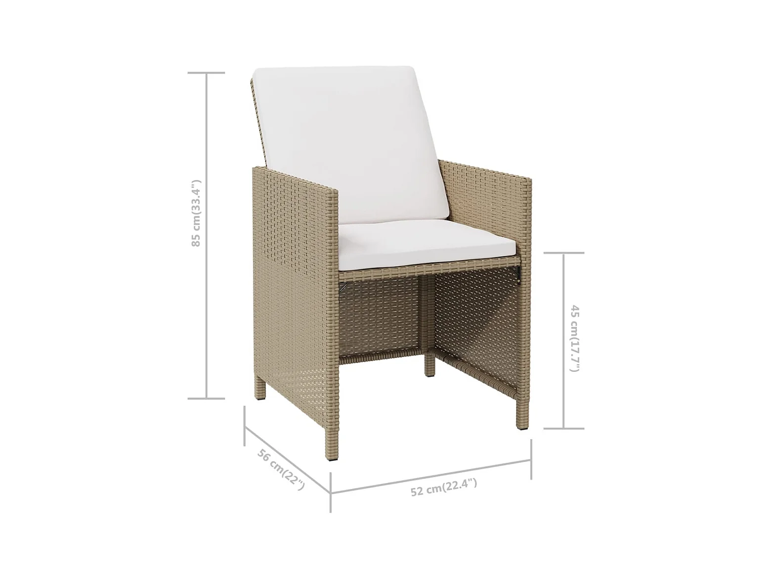 Juego de 4 sillas de jardín con cojines de resina tejida beige