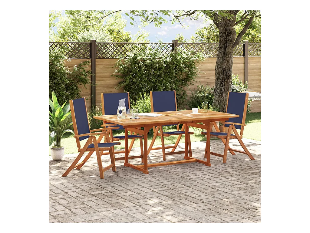 Juego de 8 sillas de jardín plegables de acacia maciza y textilene