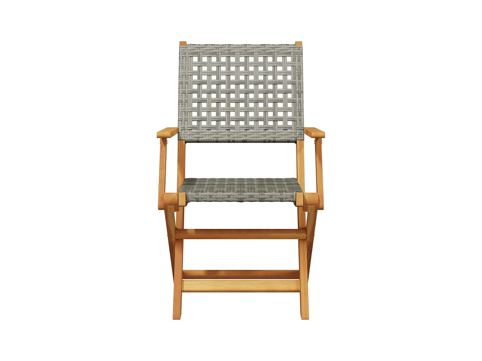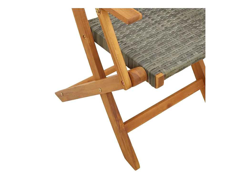 Juego de 4 sillas de jardín plegables de ratán sintético gris de madera maciza