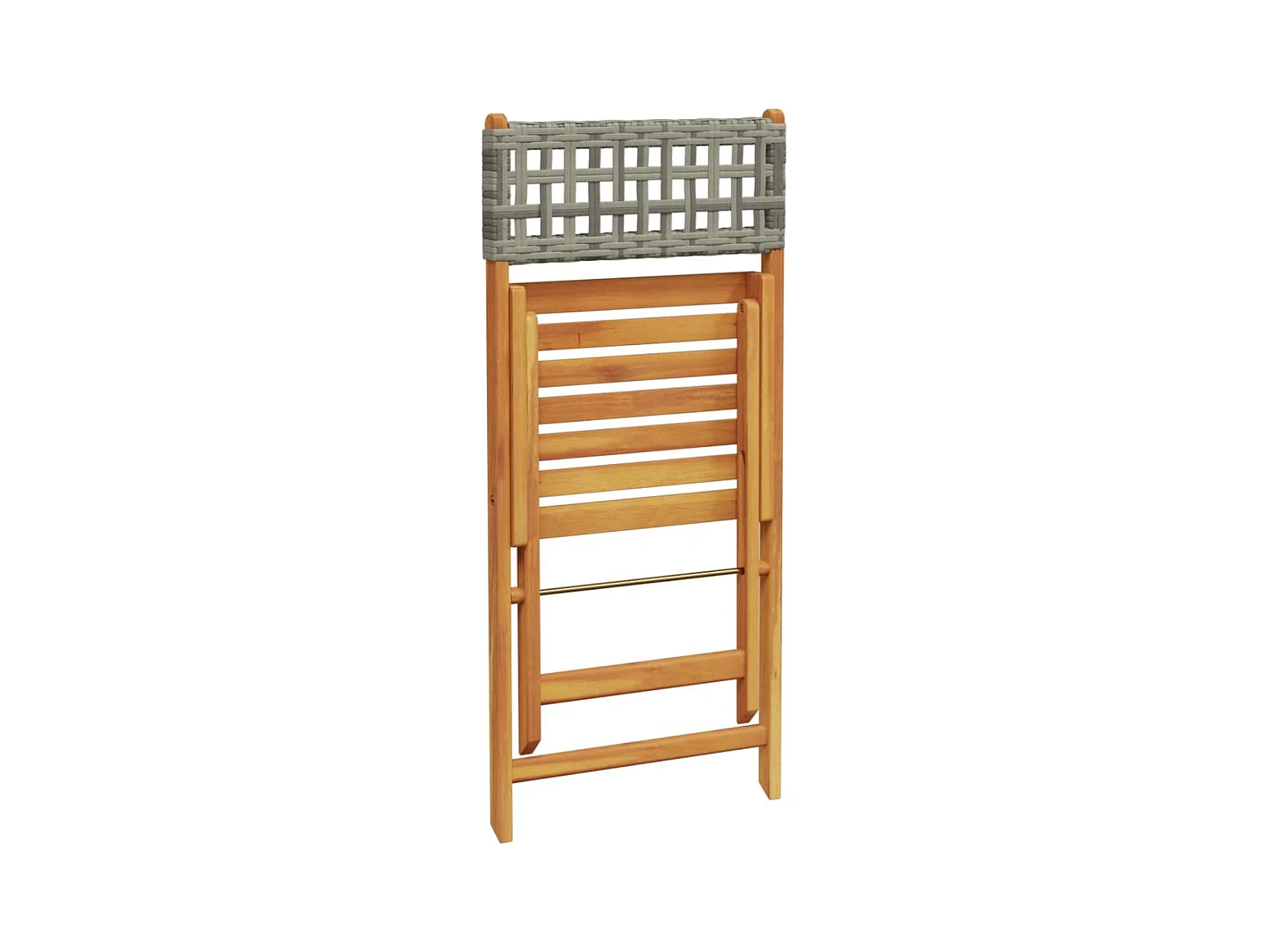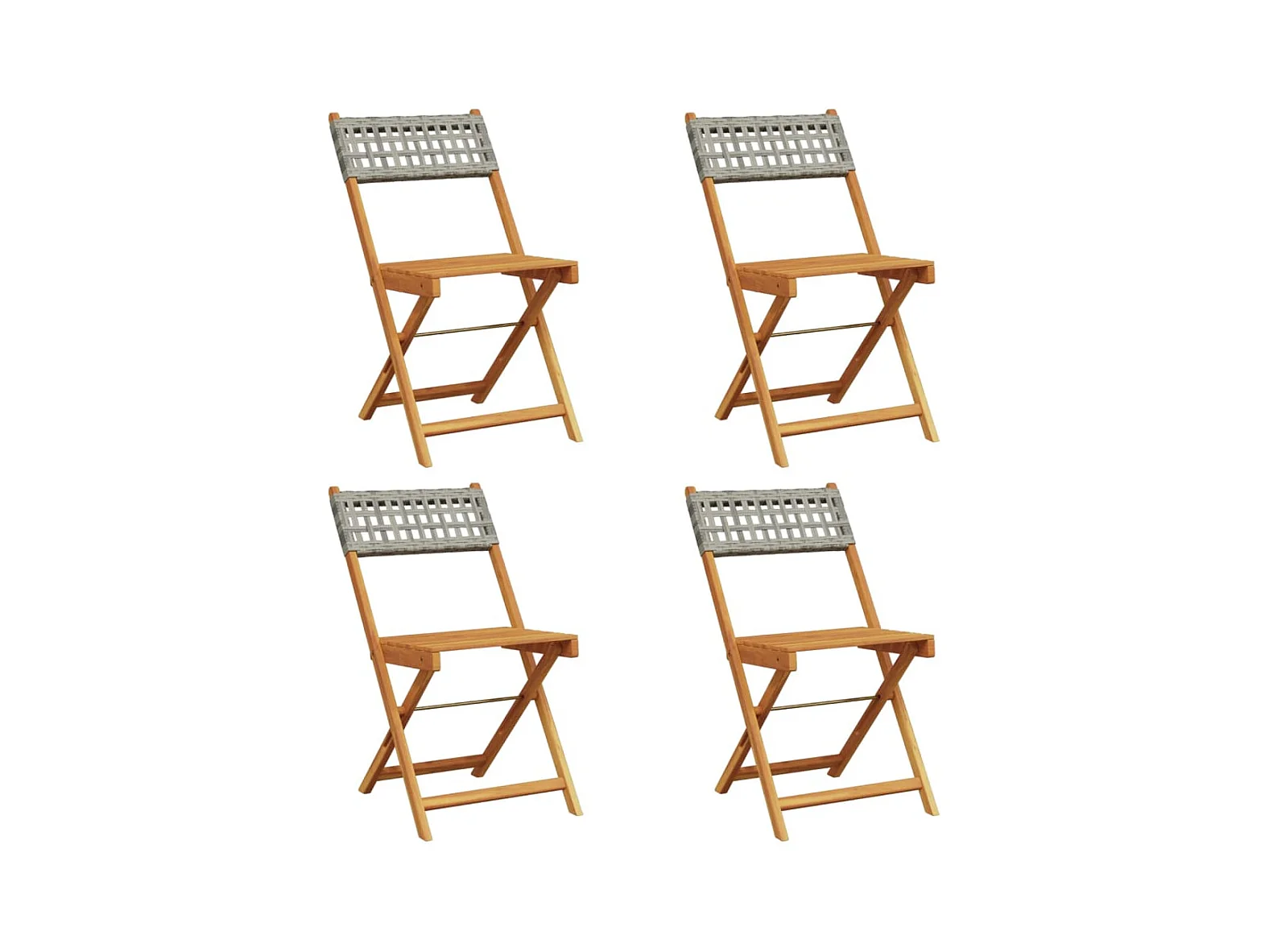 Juego de 4 sillas de jardín plegables de ratán sintético gris de madera maciza