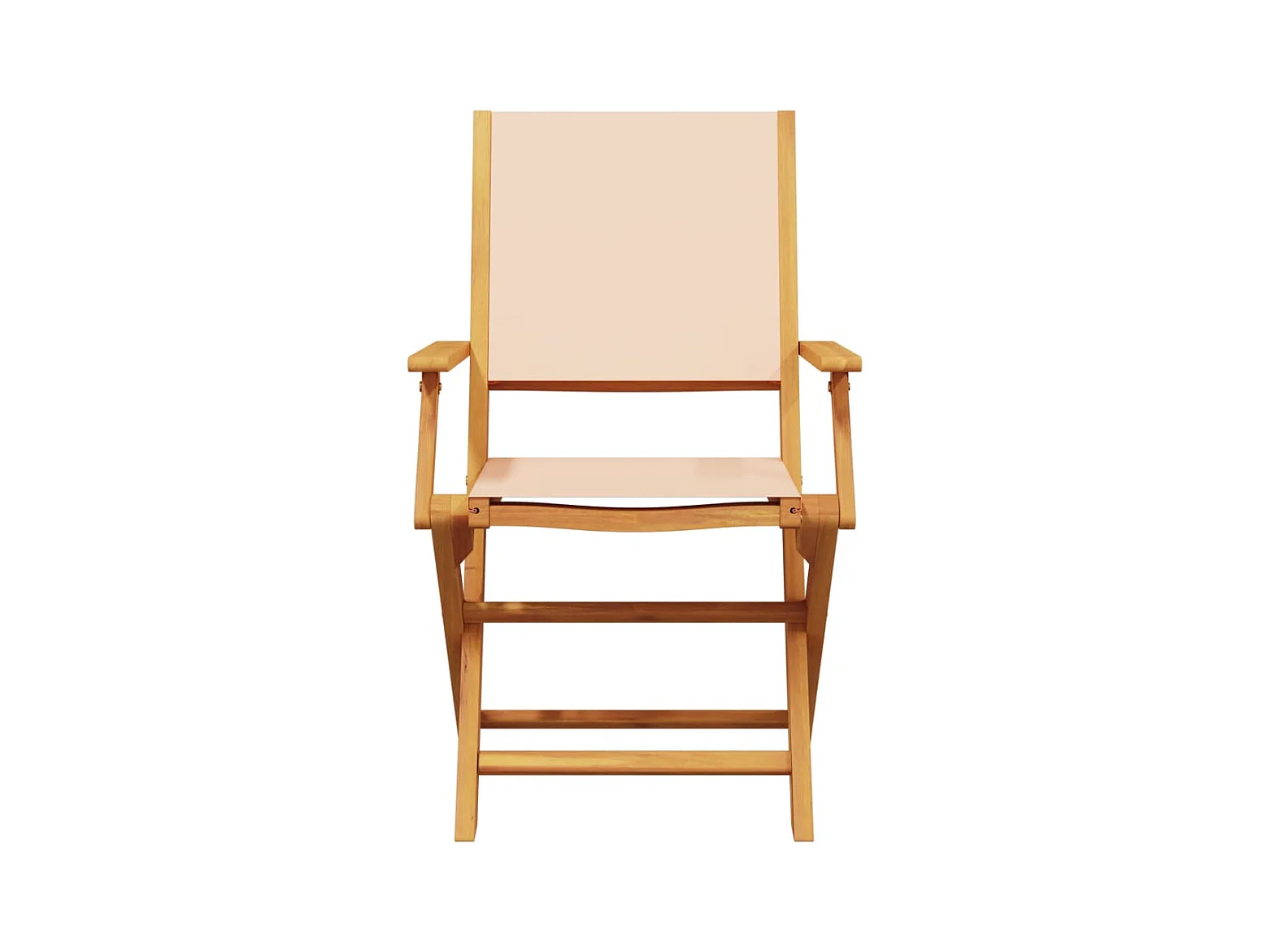 Juego de 4 sillas de jardín plegables de tela beige y madera maciza