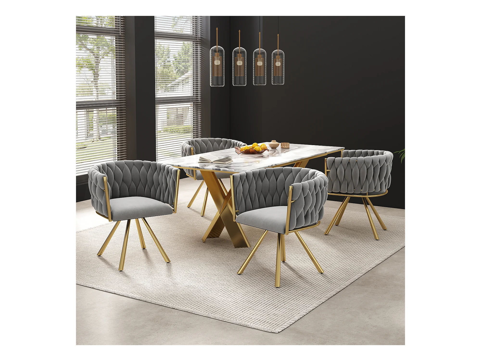 Juego de 4 sillas giratorias de terciopelo gris dorado de diseño moderno de 2 piezas con patas de metal para sala de estar y dormitorio