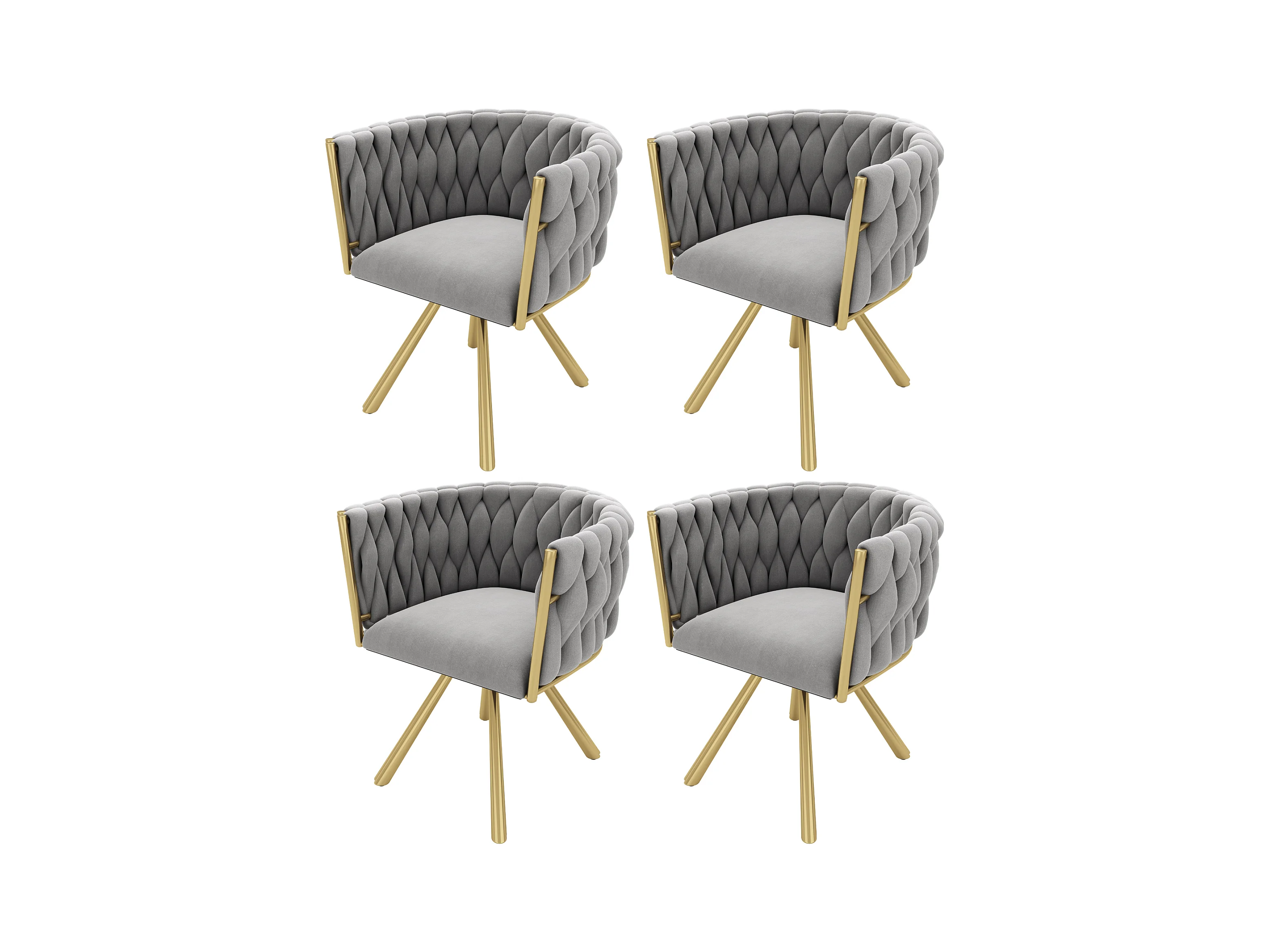 Silla giratoria de terciopelo gris con patas de metal para sala de estar, dormitorio, oficina, diseño moderno, juego de 4