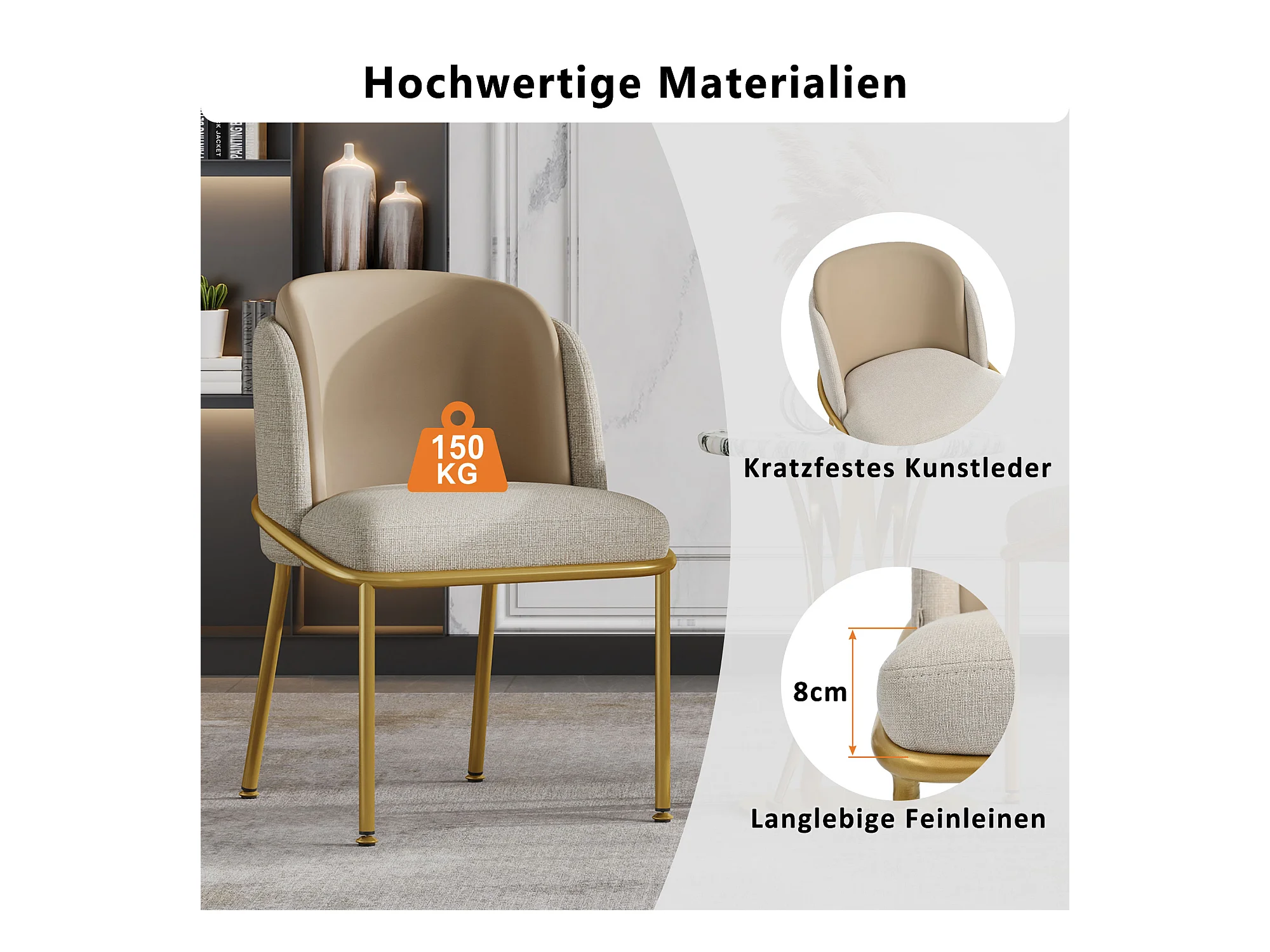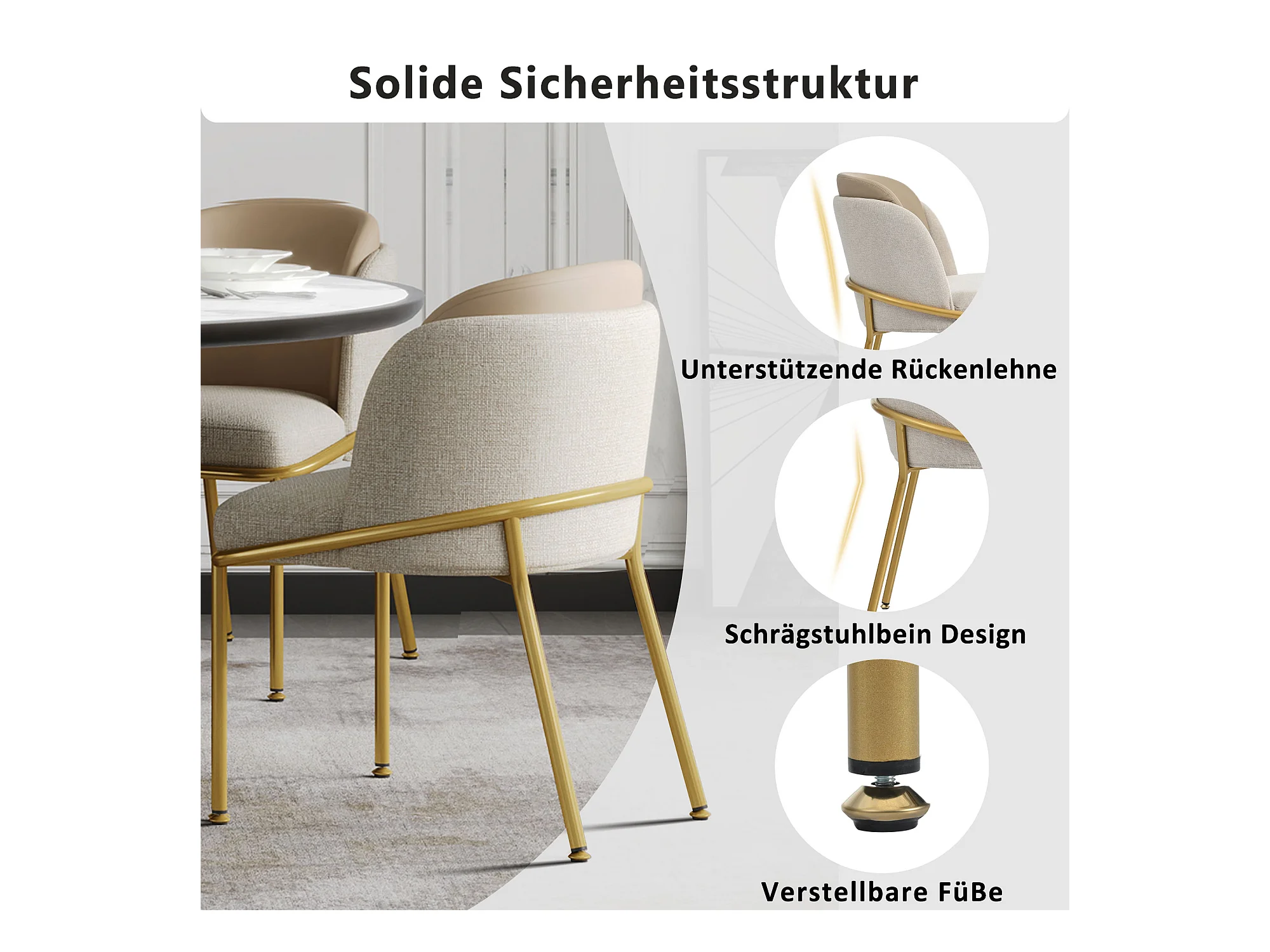 Juego de 4 sillas modernas, con pata inclinada y pies ajustables, beige + caqui
