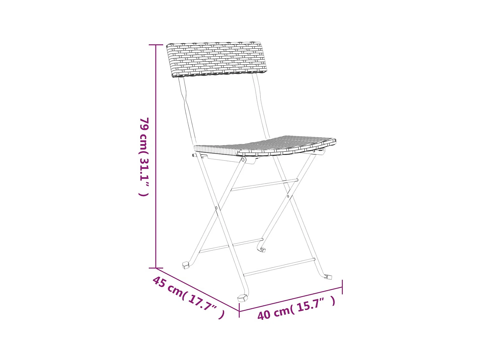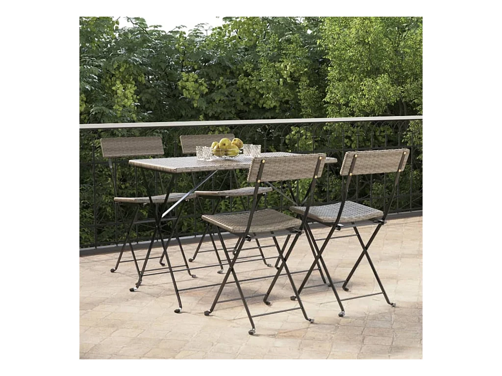 Juego de 4 sillas plegables de bistró de mimbre de resina gris y acero