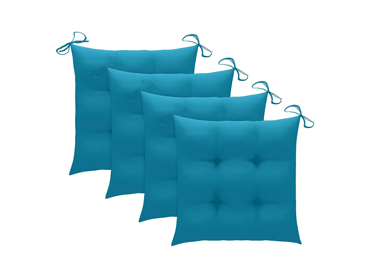Juego de 4 sillas de jardín con cojines azul claro de teca maciza