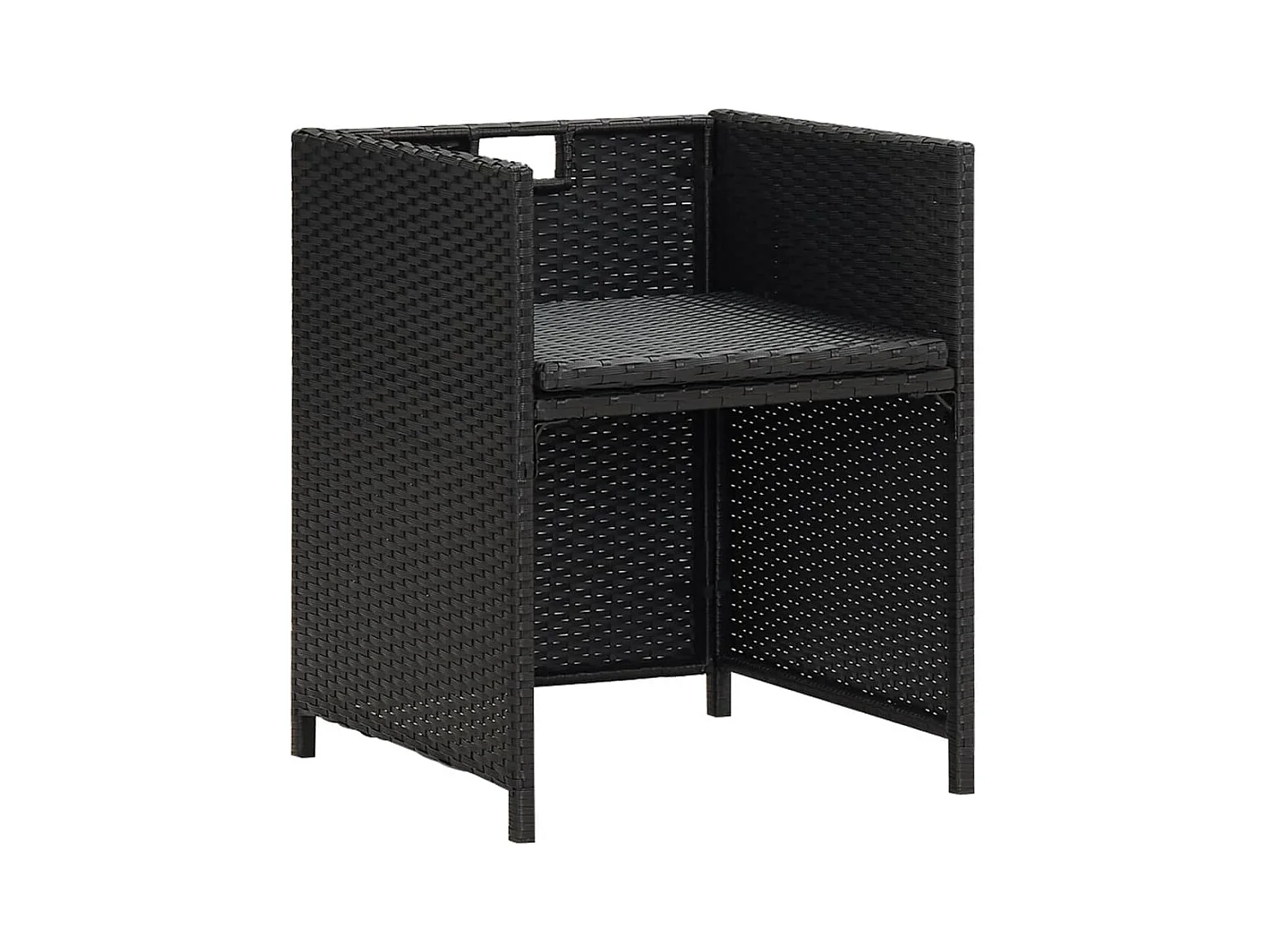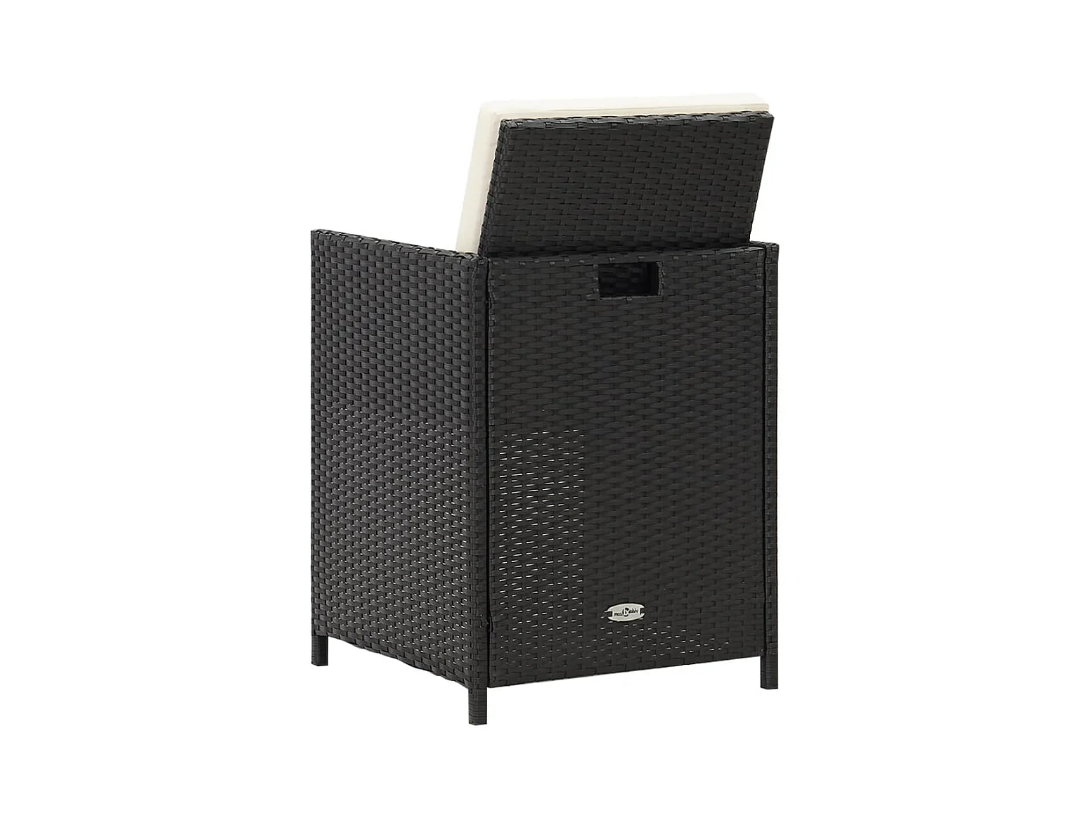 Juego de 4 sillas y cojines para comedor de jardín de ratán sintético negro.