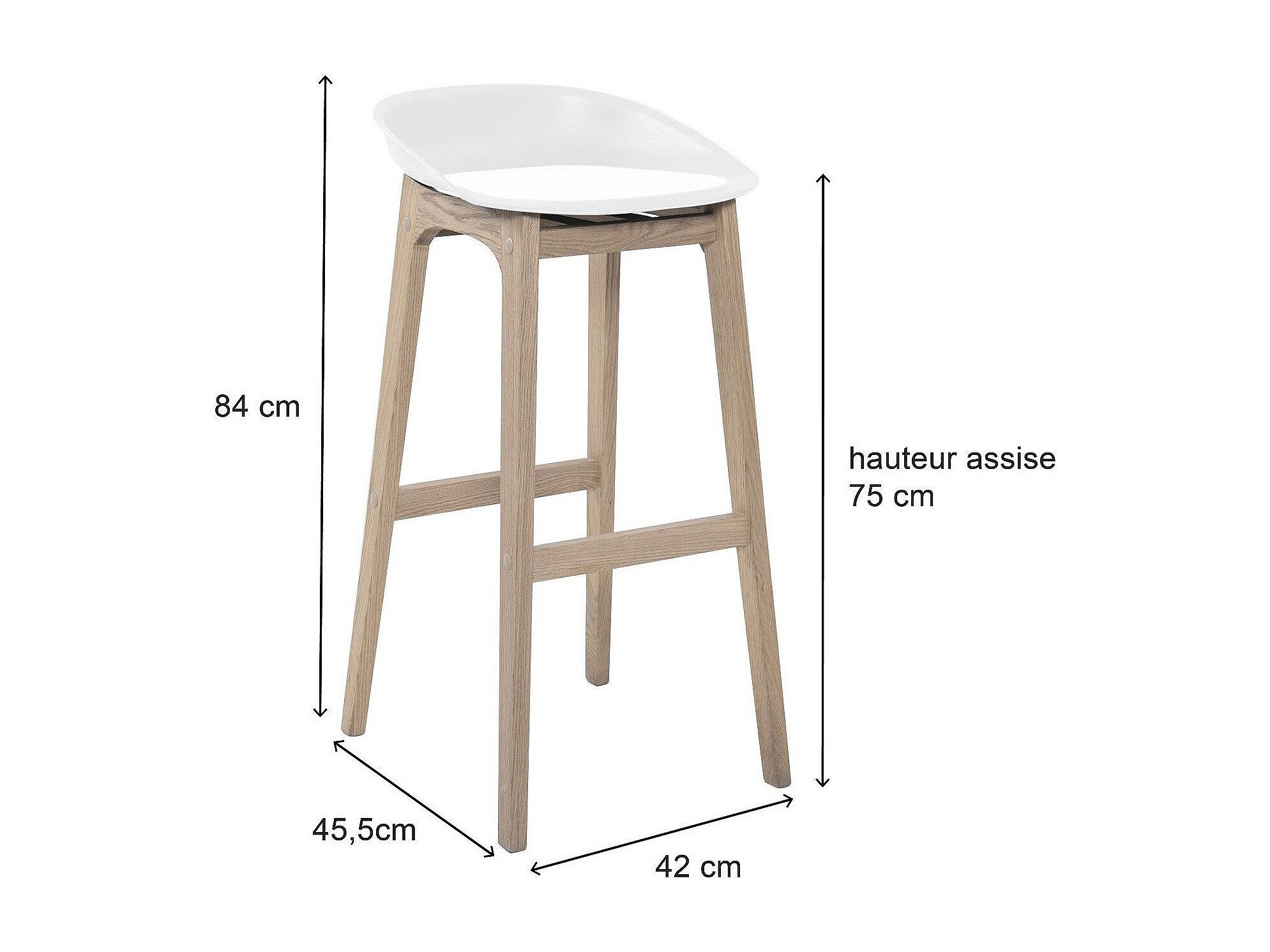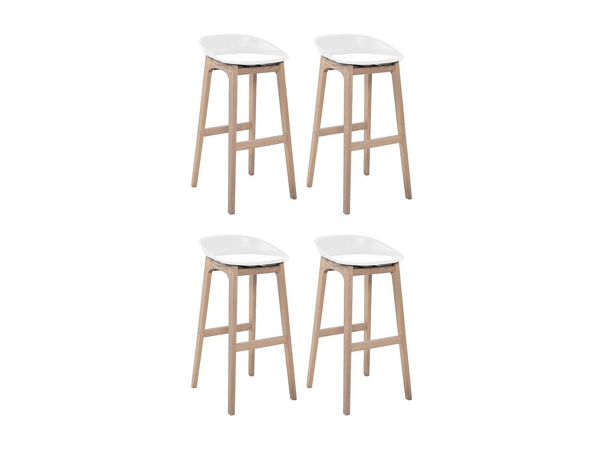 Conjunto de taburetes de bar TANNA de roble de 75 cm con asiento de plástico blanco