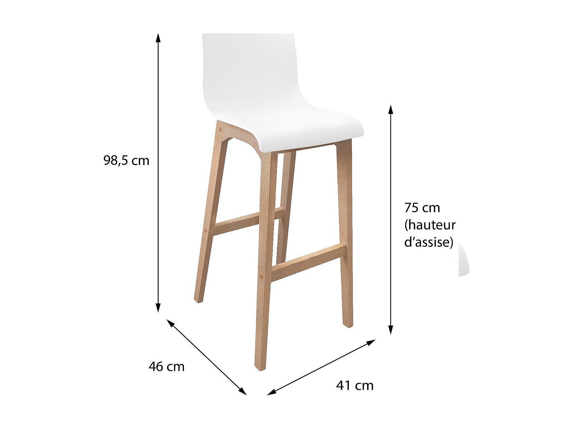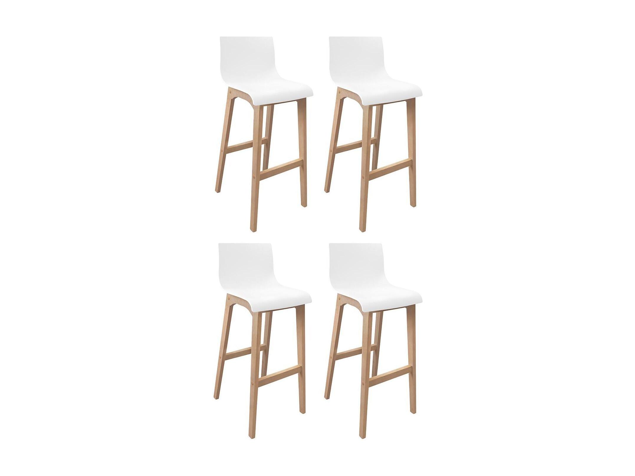Conjunto de taburetes de bar TANNA de roble de 75 cm con asiento de plástico blanco
