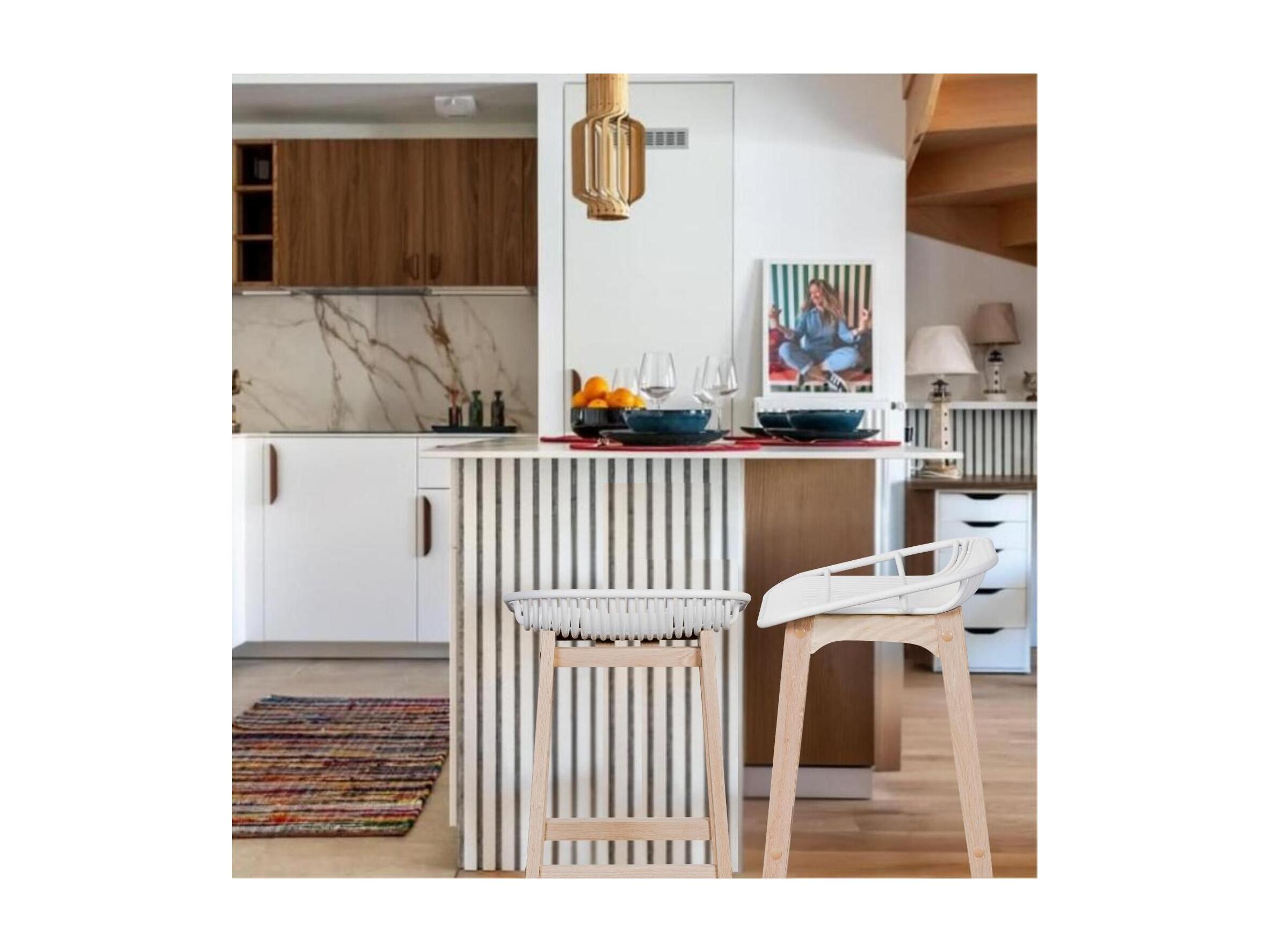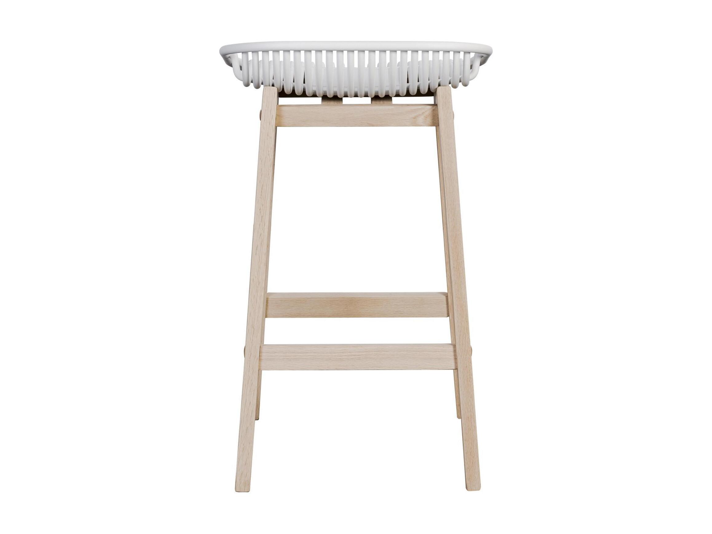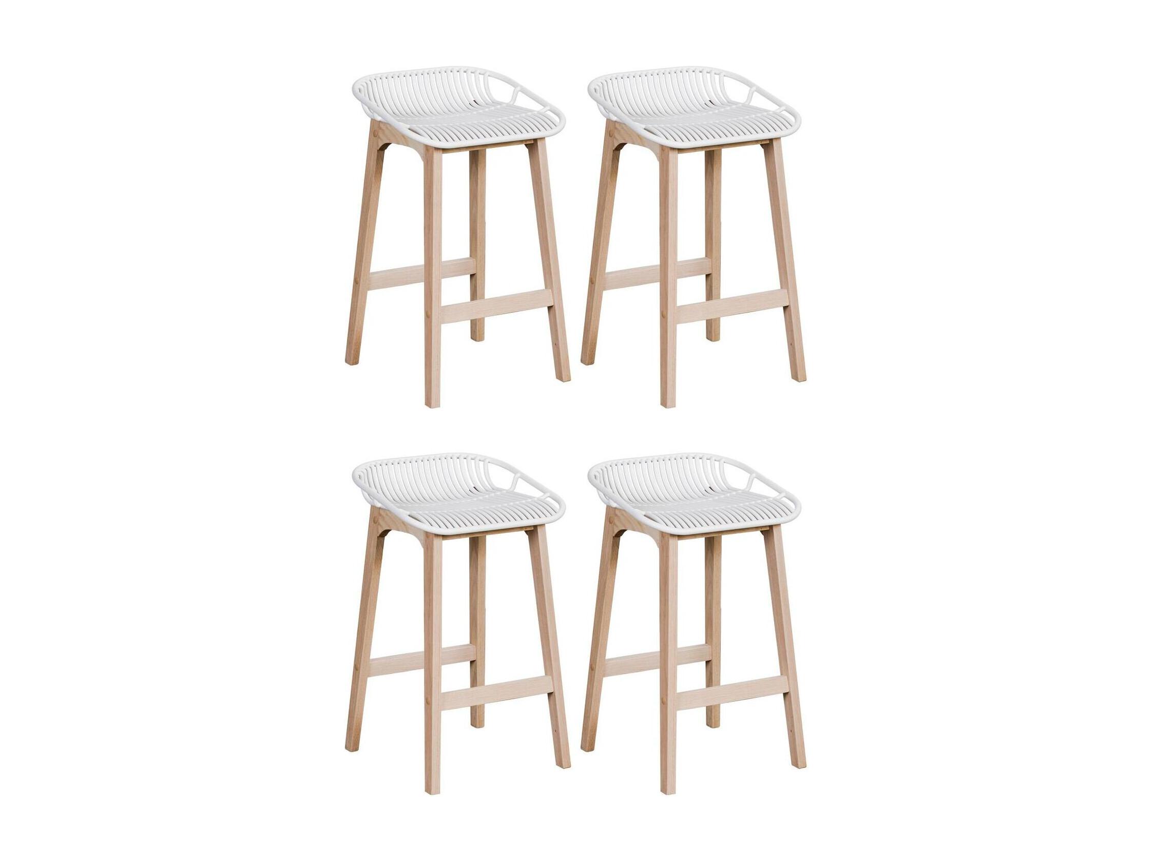 Conjunto de taburetes de bar TANNA de roble de 75 cm con asiento de plástico blanco