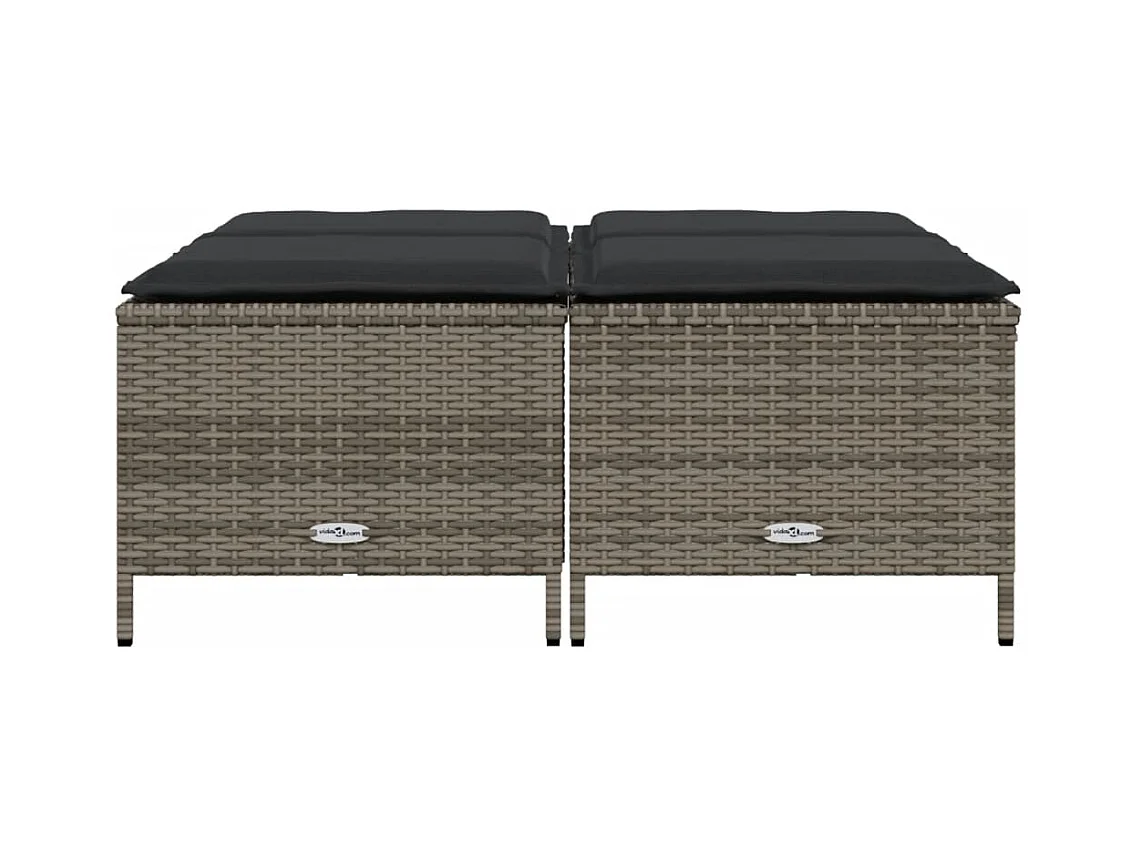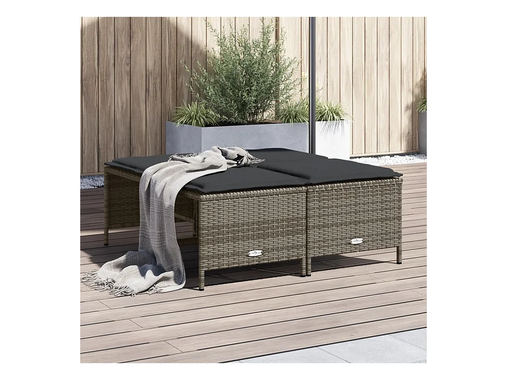 Juego de 4 taburetes de jardín con cojines de resina trenzada gris
