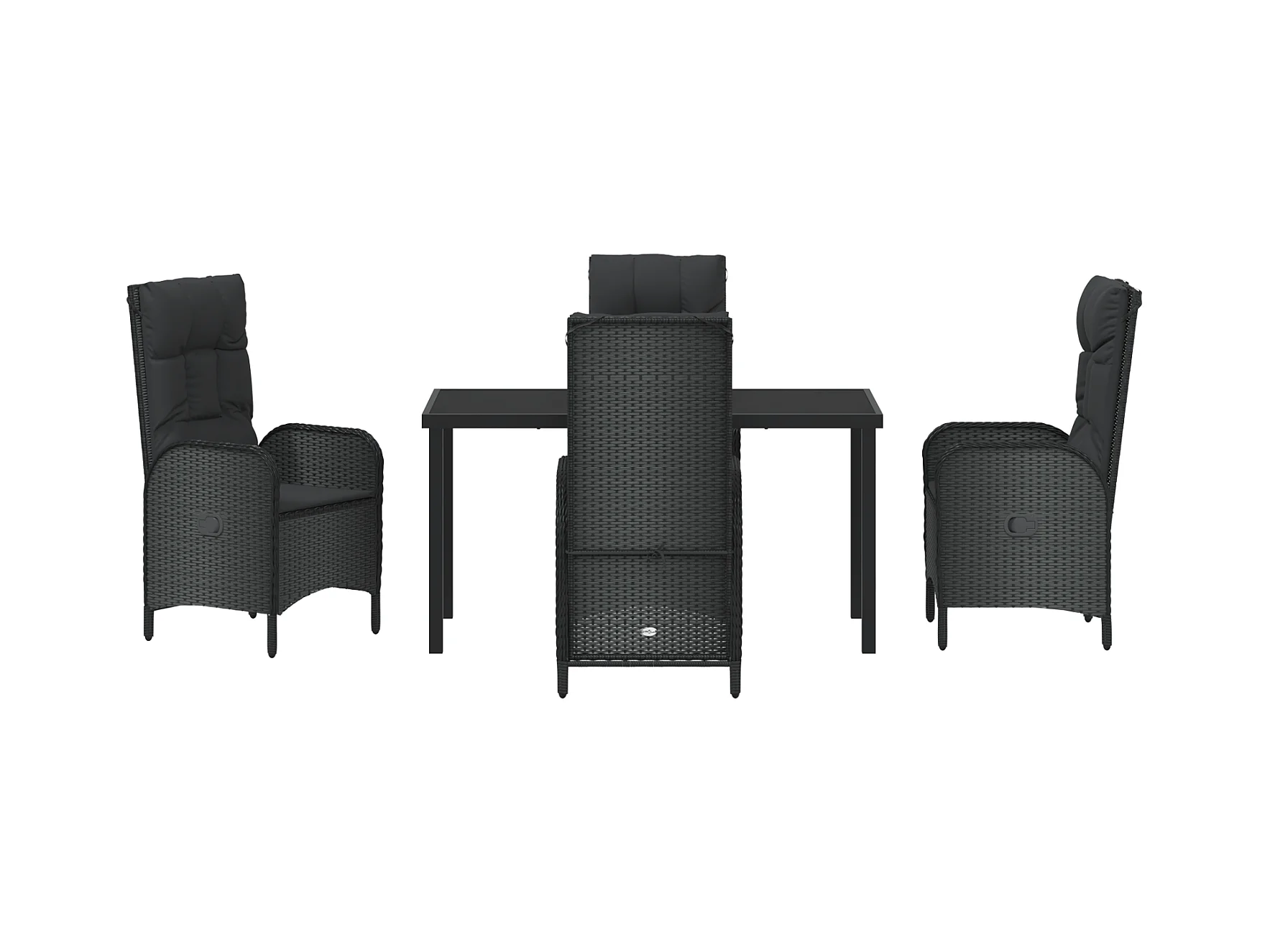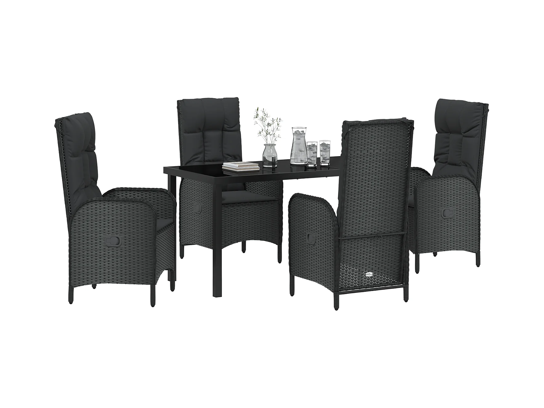 Juego de 4 sillas reclinables de jardín de madera maciza de ratán negro