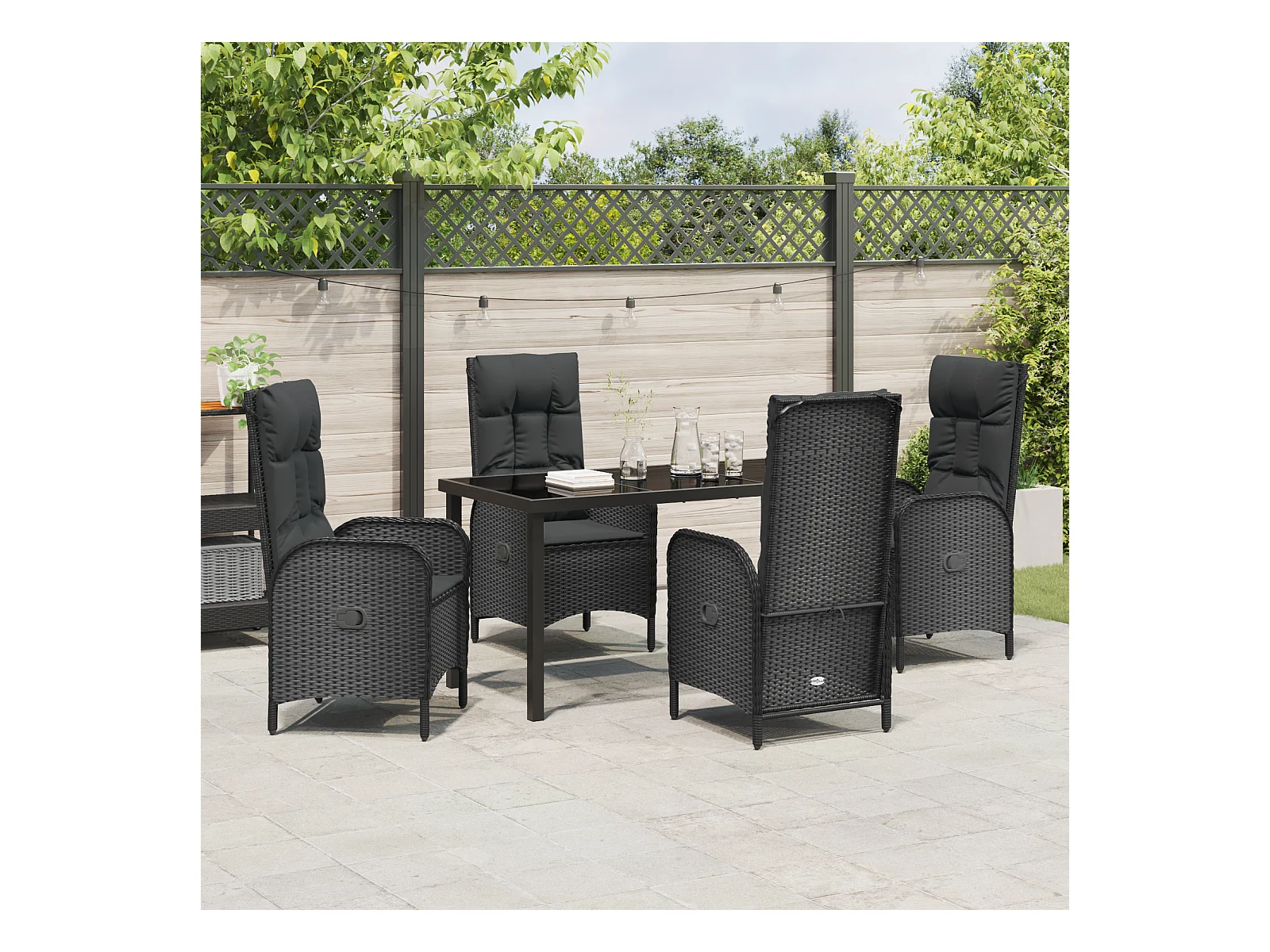 Juego de 5 sillas de jardín de ratán sintético negro