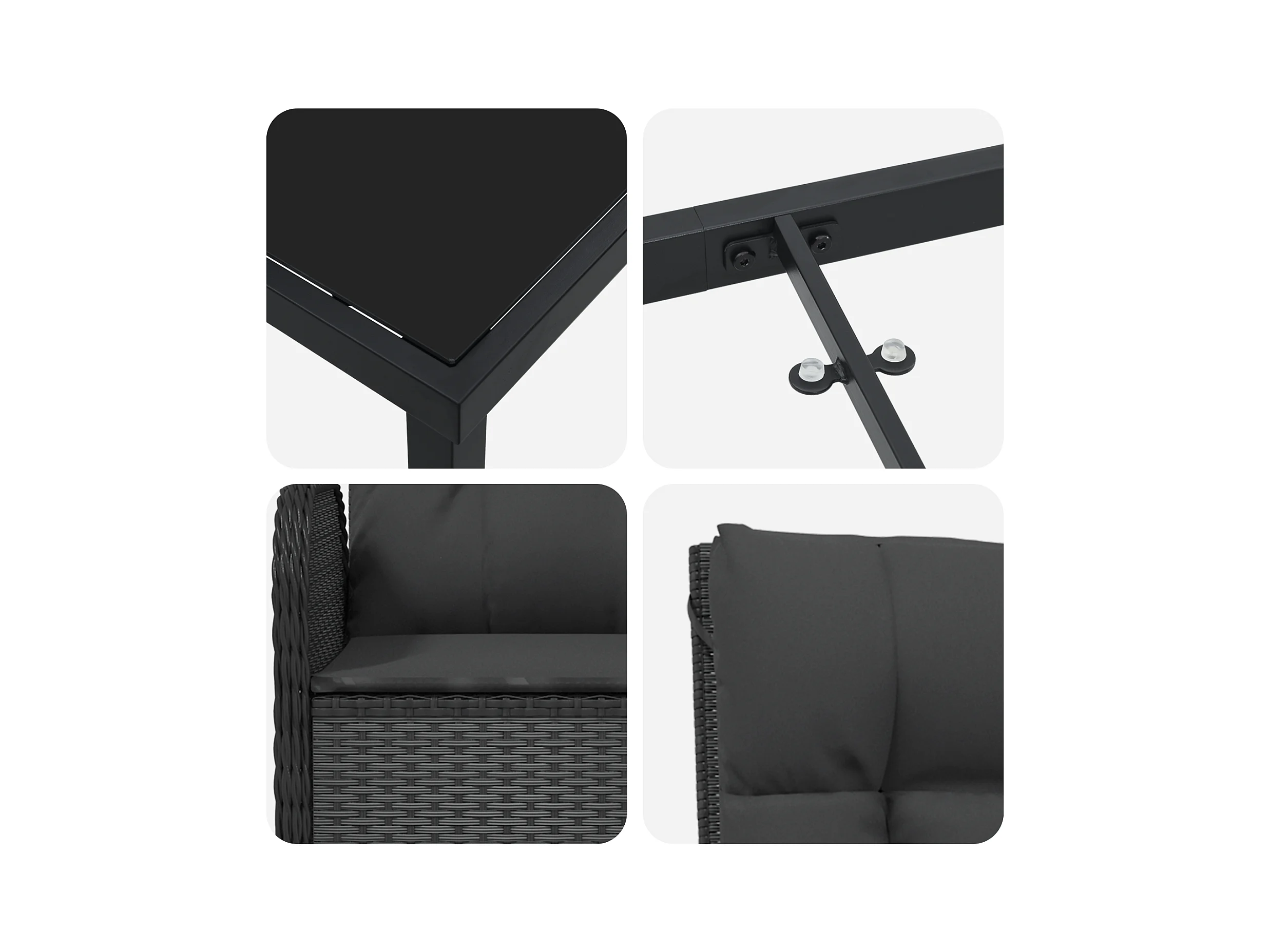 -2 sillas de jardín de ratán sintético negro con cojines