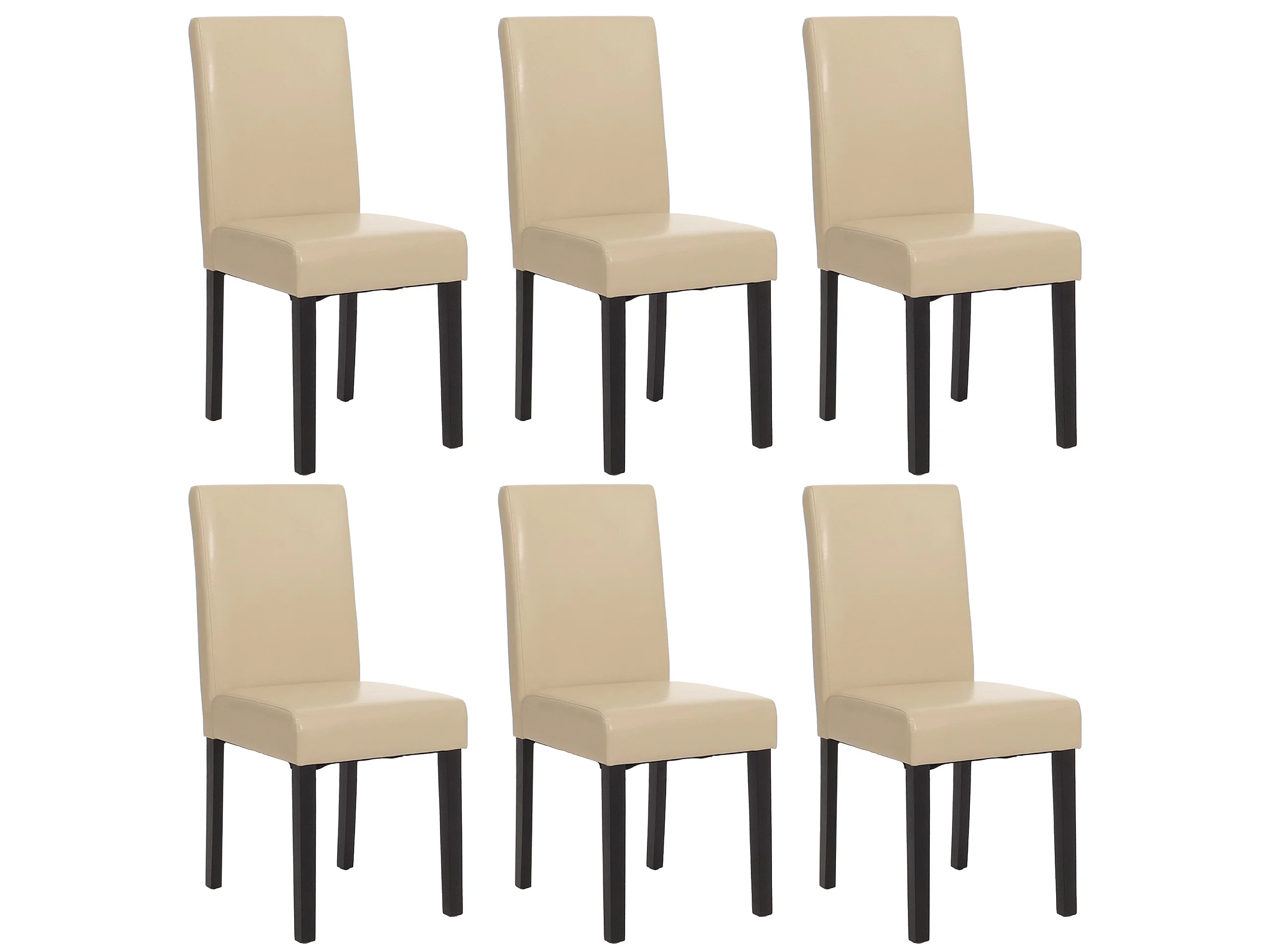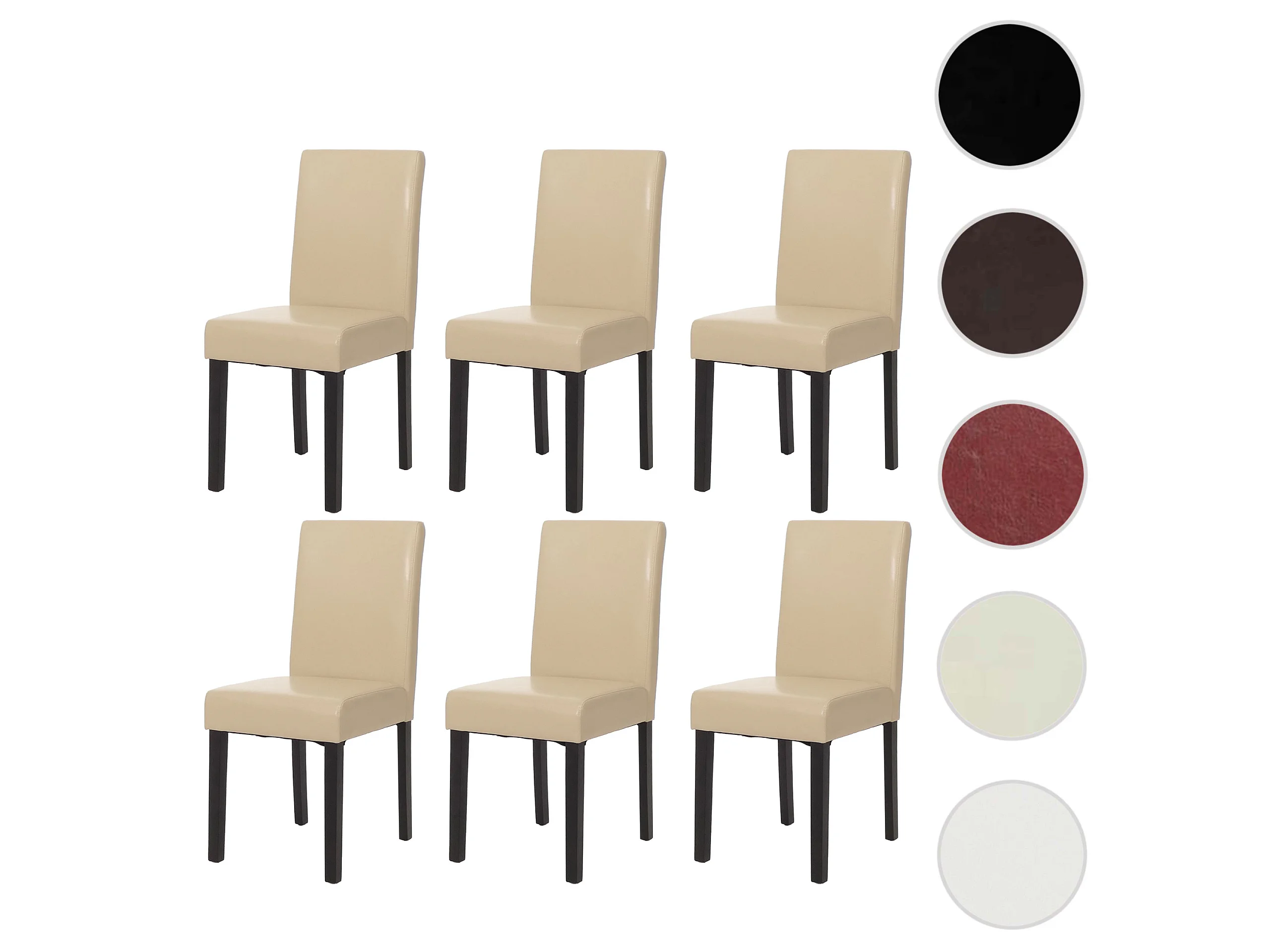 Juego de 6 sillas de comedor Littau de piel sintética, polipiel, crema, patas oscuras