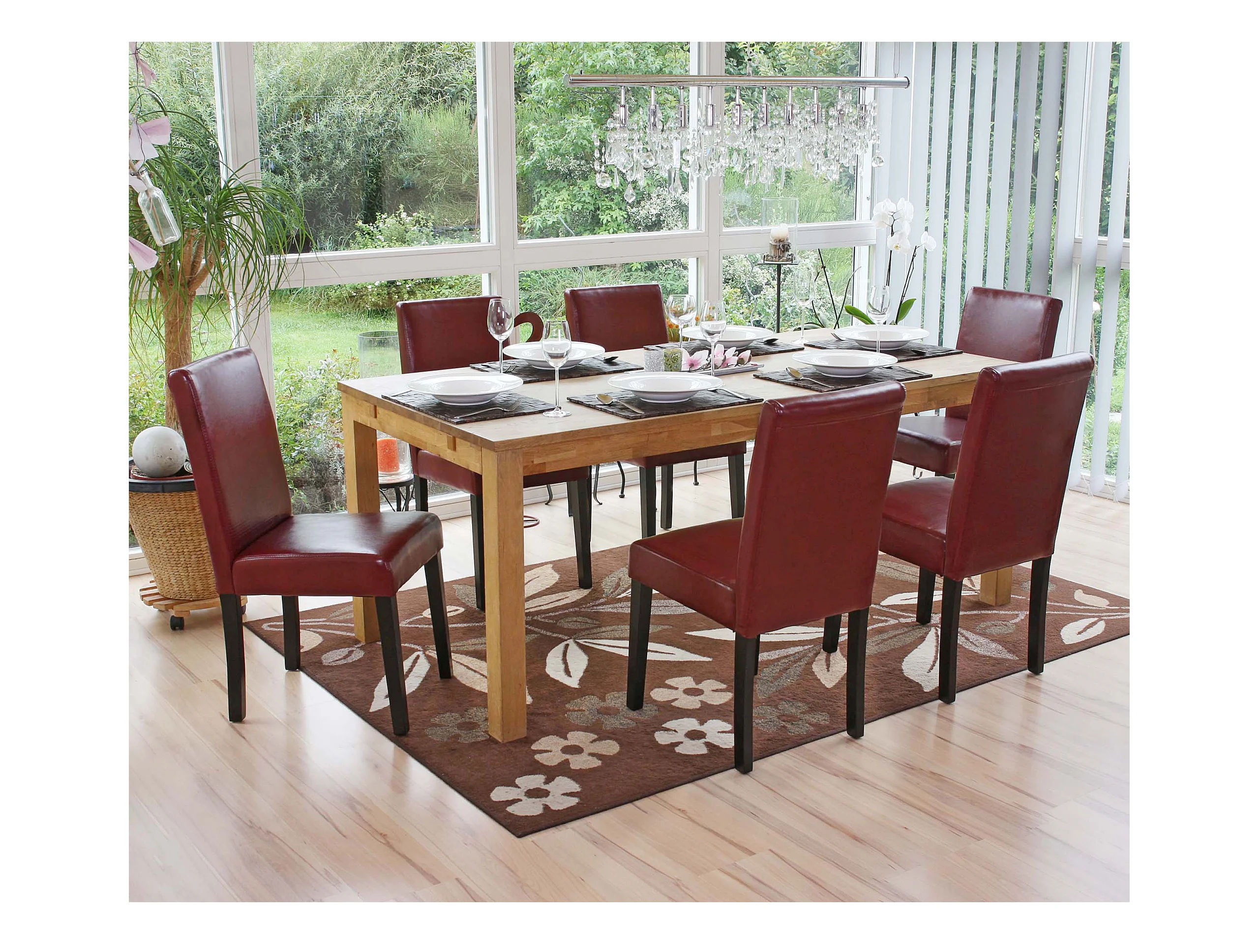 Juego de 6 sillas de comedor Littau de piel sintética, polipiel, marrón rojizo, patas oscuras