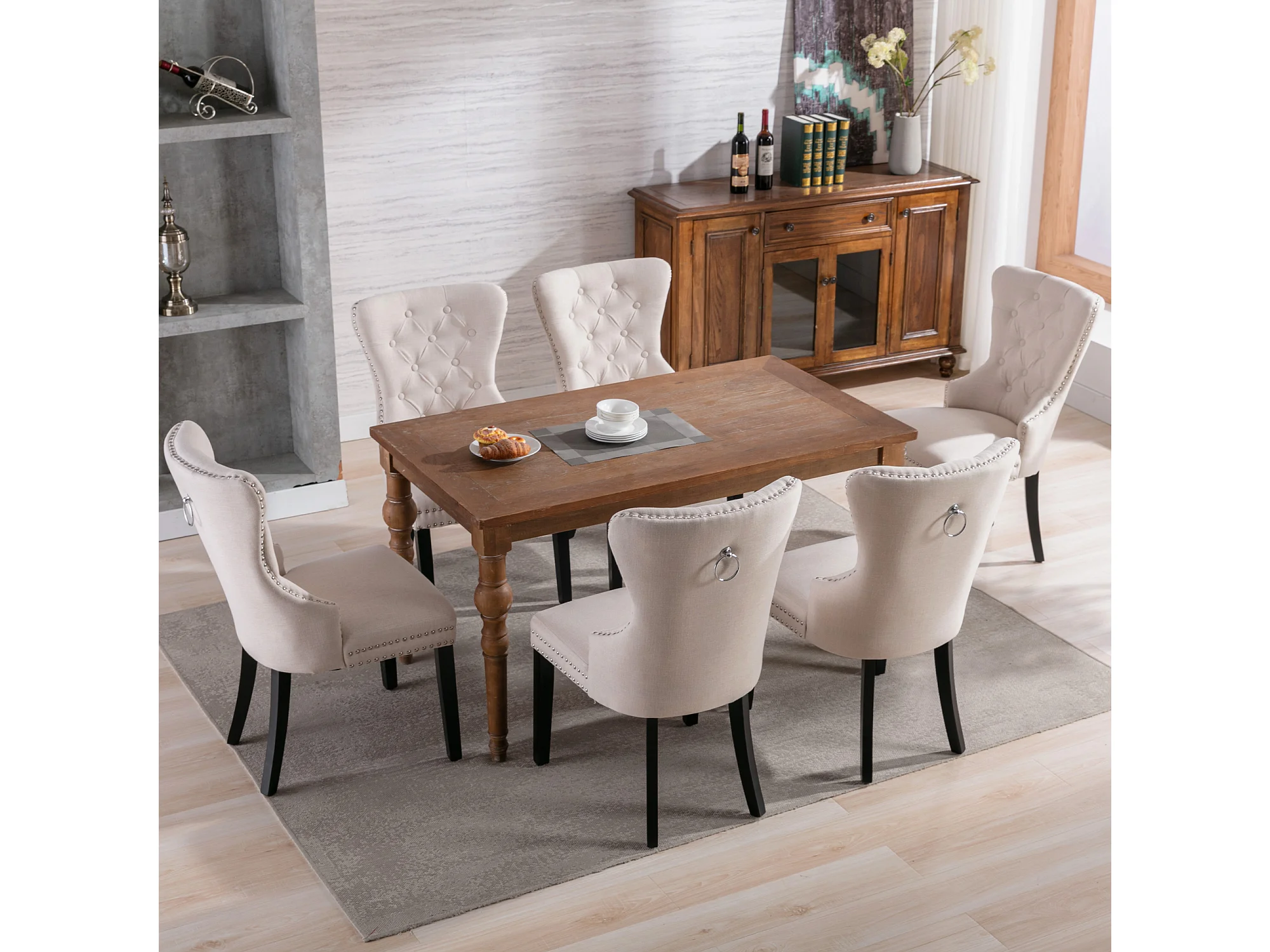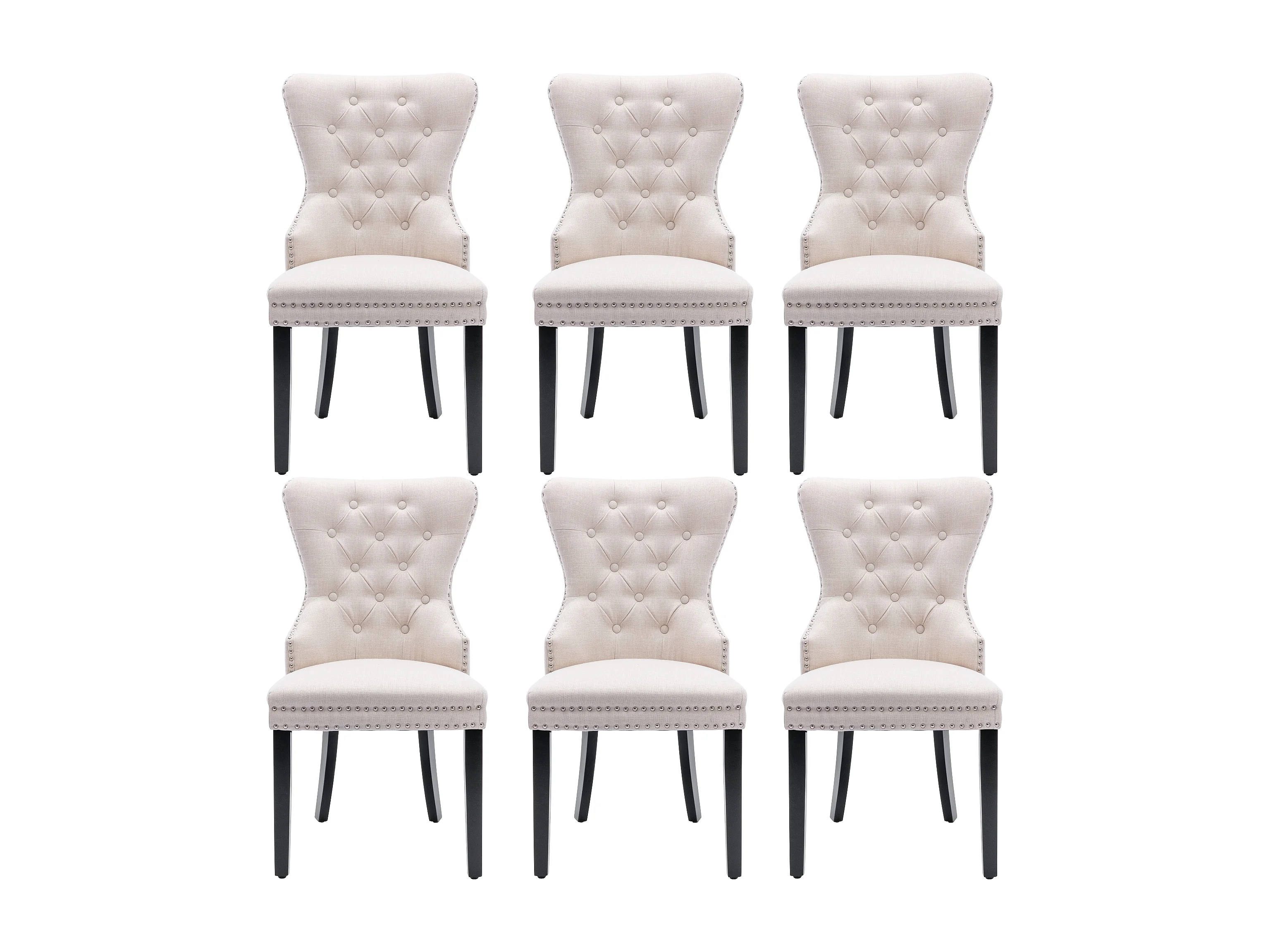Juego de 6 sillas de comedor tapizadas en lino - 53 x 54 x 97 cm - patas de roble - sillón - beige