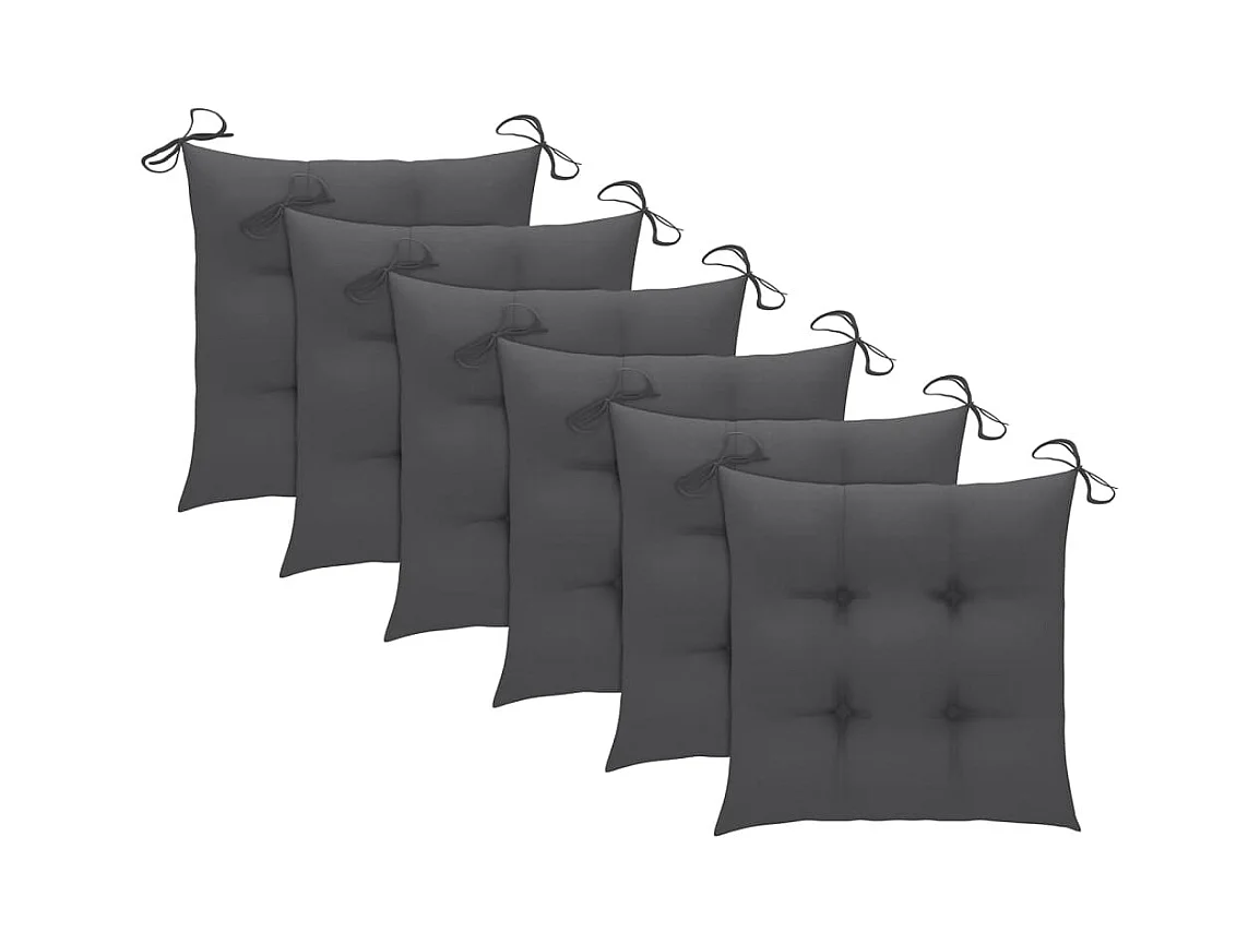 Juego de 6 sillas de jardín con cojines grises de madera maciza de teca