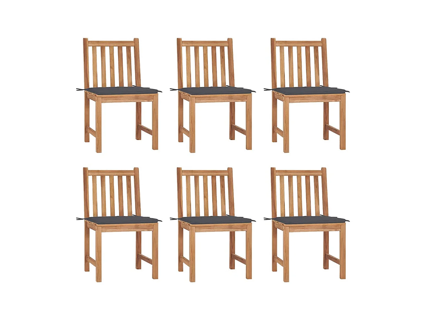 Conjunto de 6 sillas de jardín con cojines antracita, madera de teca
