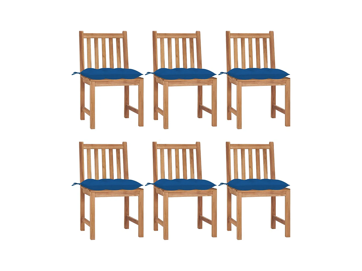 Juego de 6 sillas de jardín con cojines azul real Madera de teca