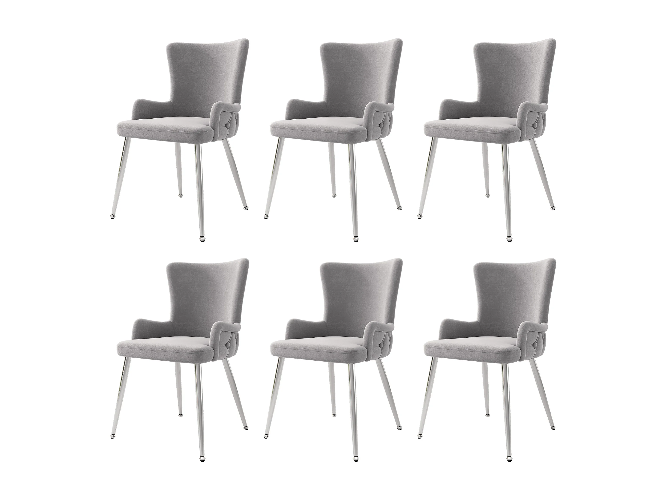 Juego de 6 sillas de terciopelo de lujo - 85 x 47 x 49 cm - con cuatro patas de metal plateado - gris