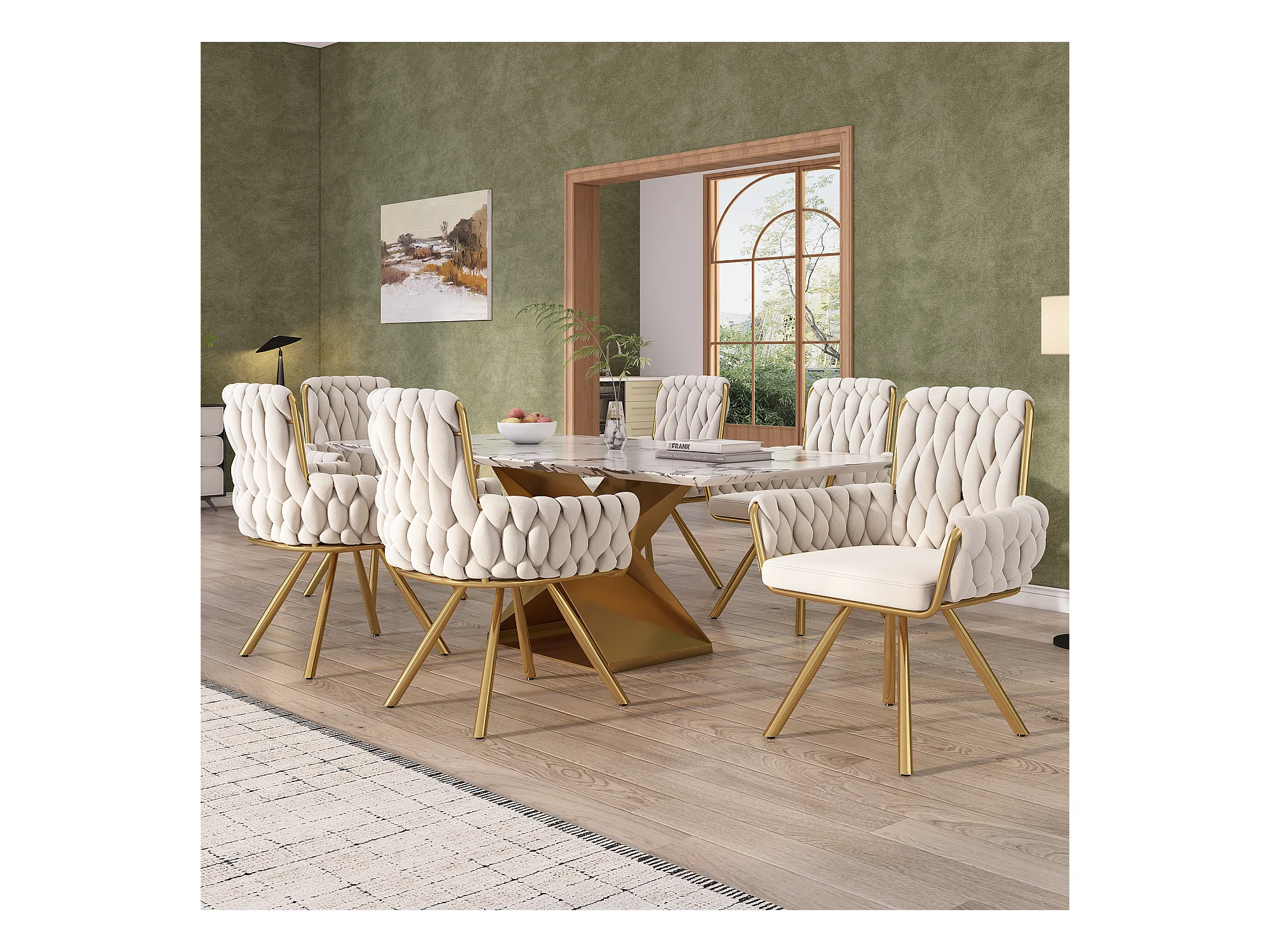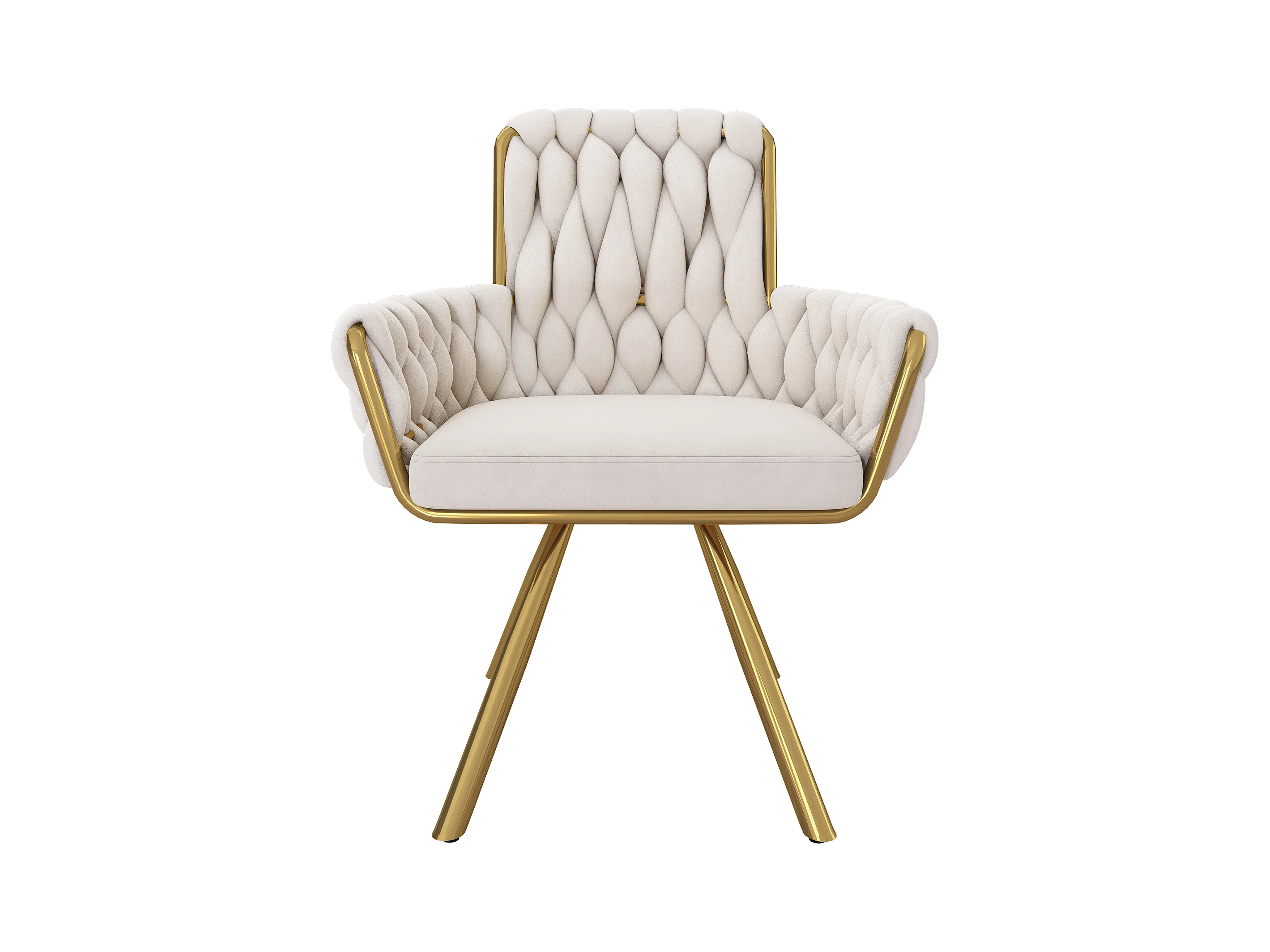 Juego de 6 sillas de terciopelo de lujo - 62,23 x 58,42 x 55,88 cm - con cuatro patas de metal dorado - beige