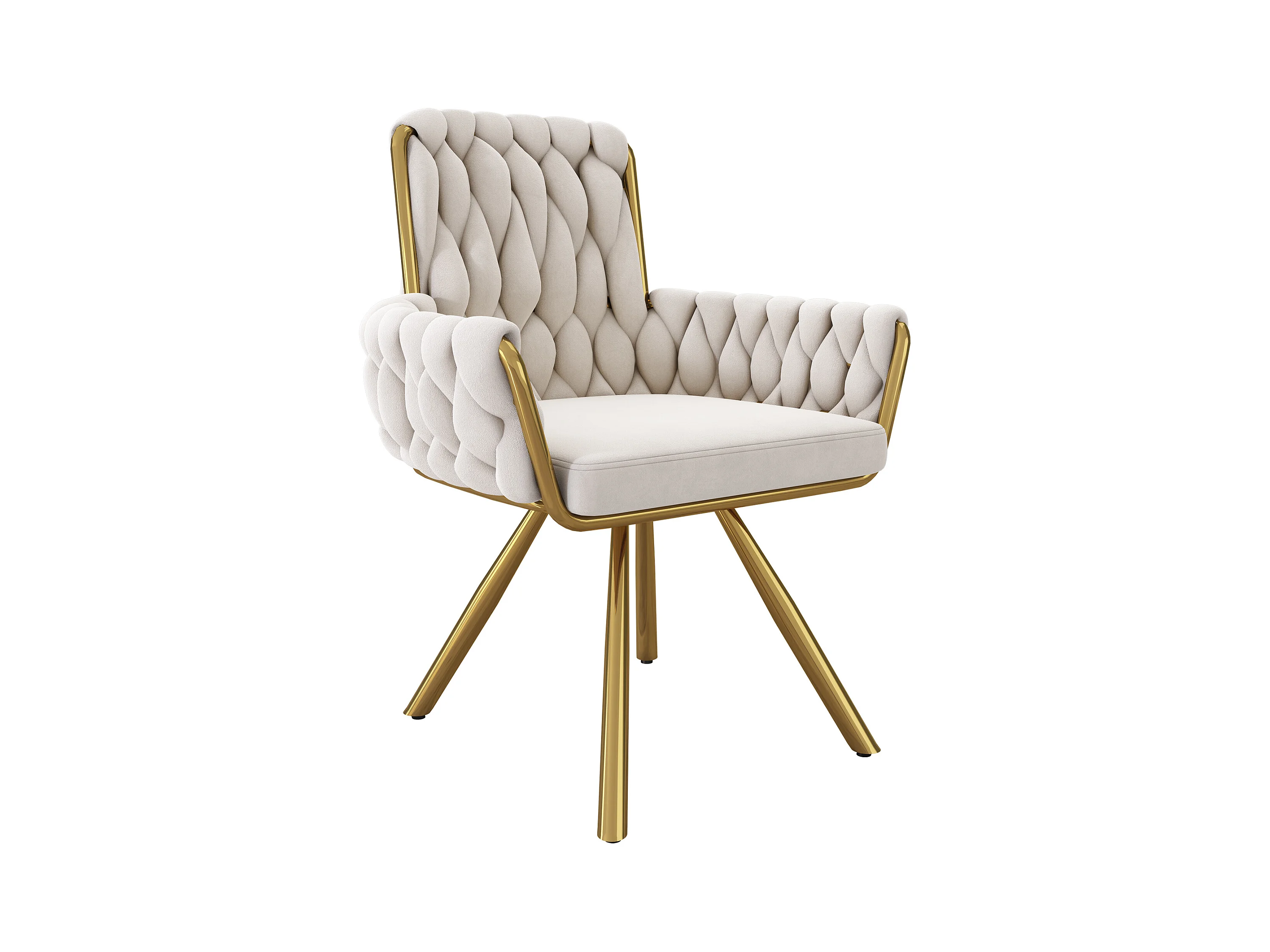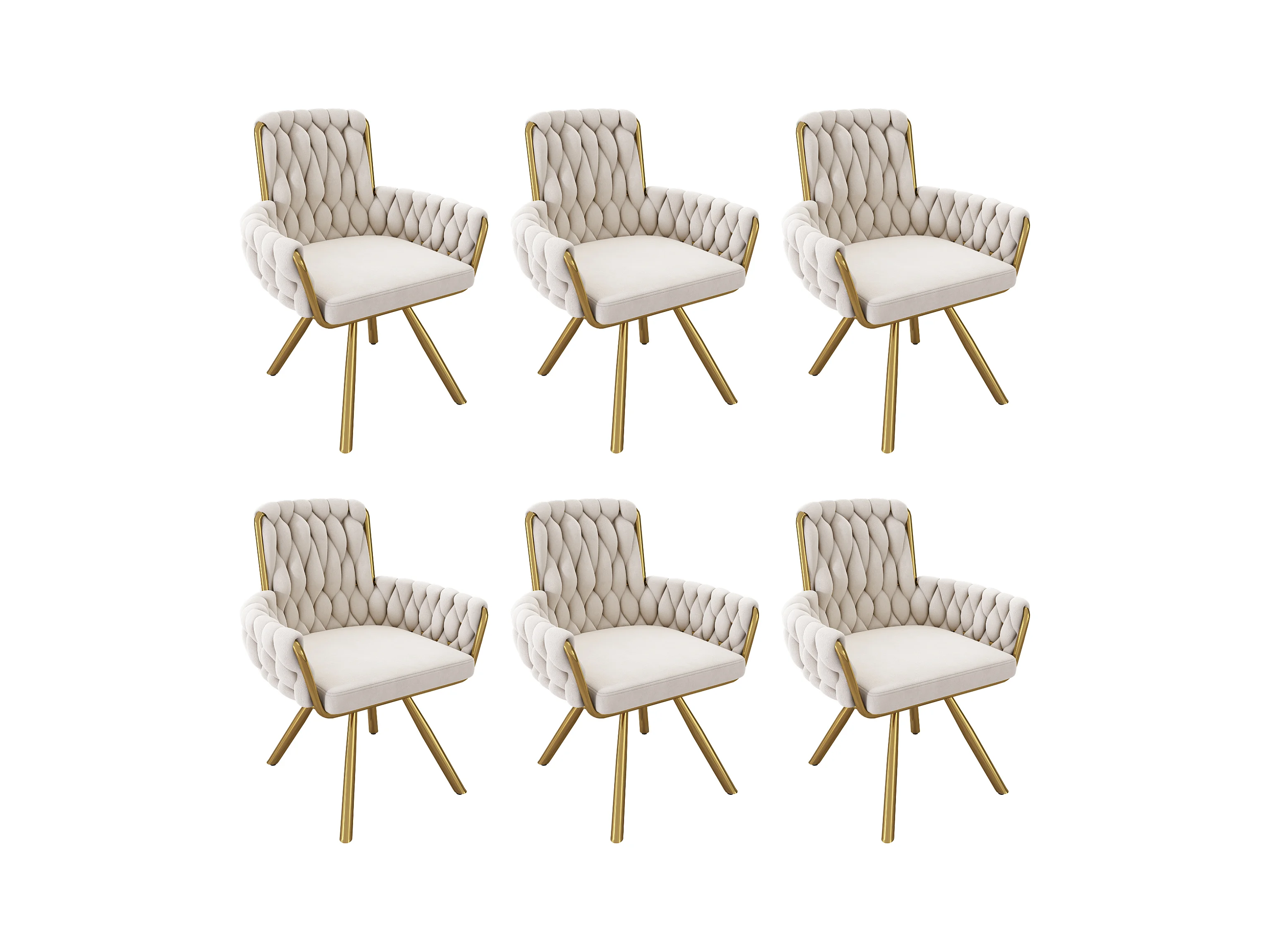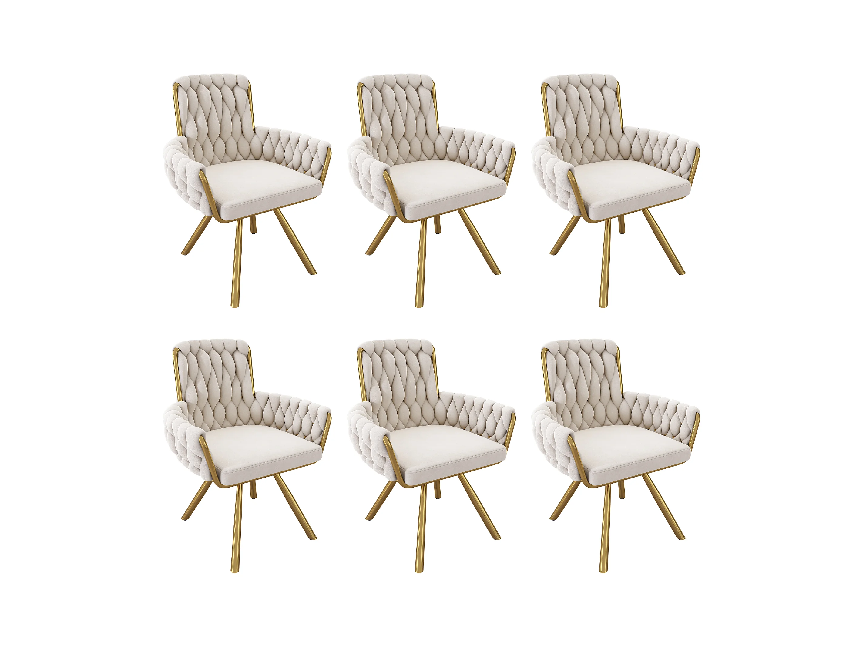 Juego de 6 sillas giratorias de terciopelo - 87 x 50 x 55 cm - Sillón con cuatro patas de metal - Beige