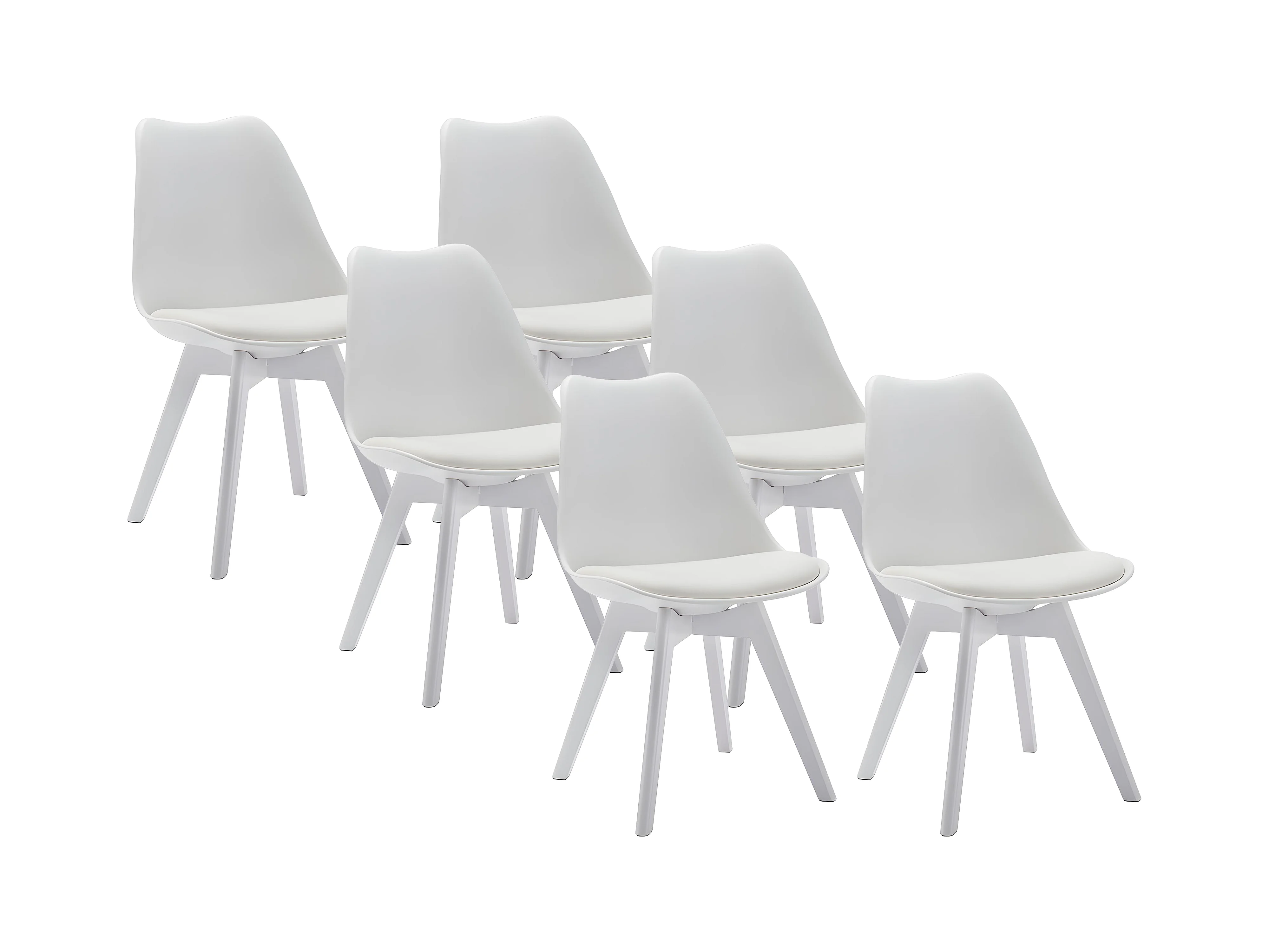Juego de 6 sillas JODY - Polipropileno y Haya - Blanco y patas blancas