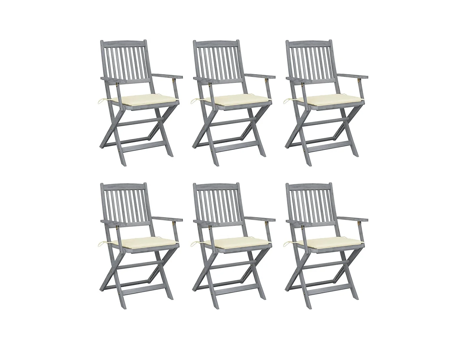 Juego de 6 sillas plegables para exterior con cojines de madera de acacia