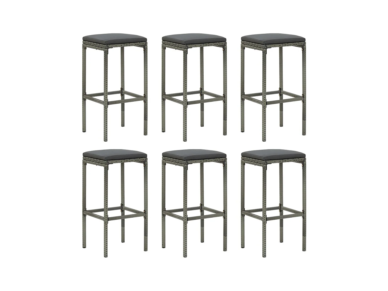 Juego de 6 taburetes de bar con cojines de resina de mimbre gris