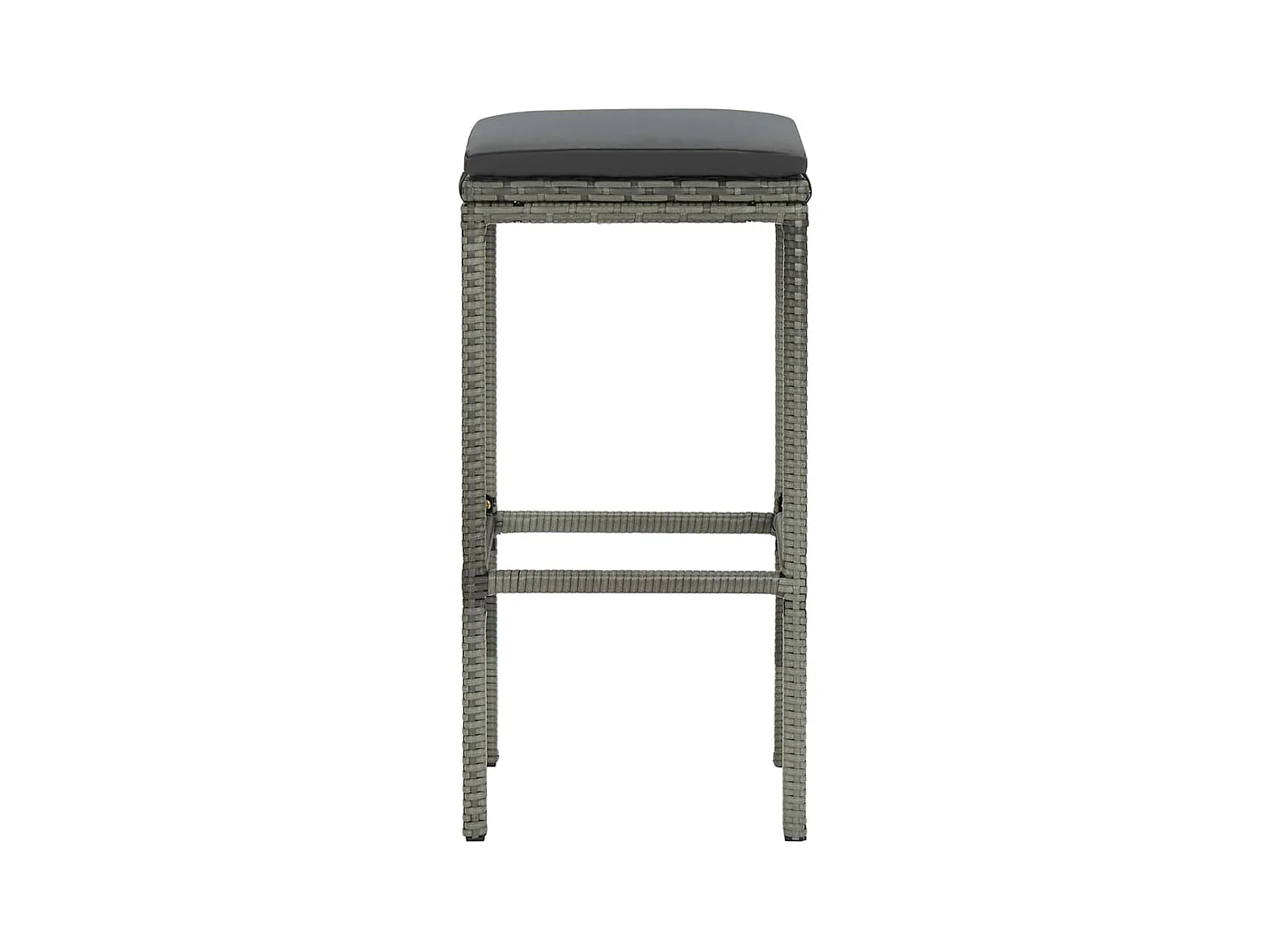 Taburetes de bar con cojines, juego de 3, gris, resina trenzada