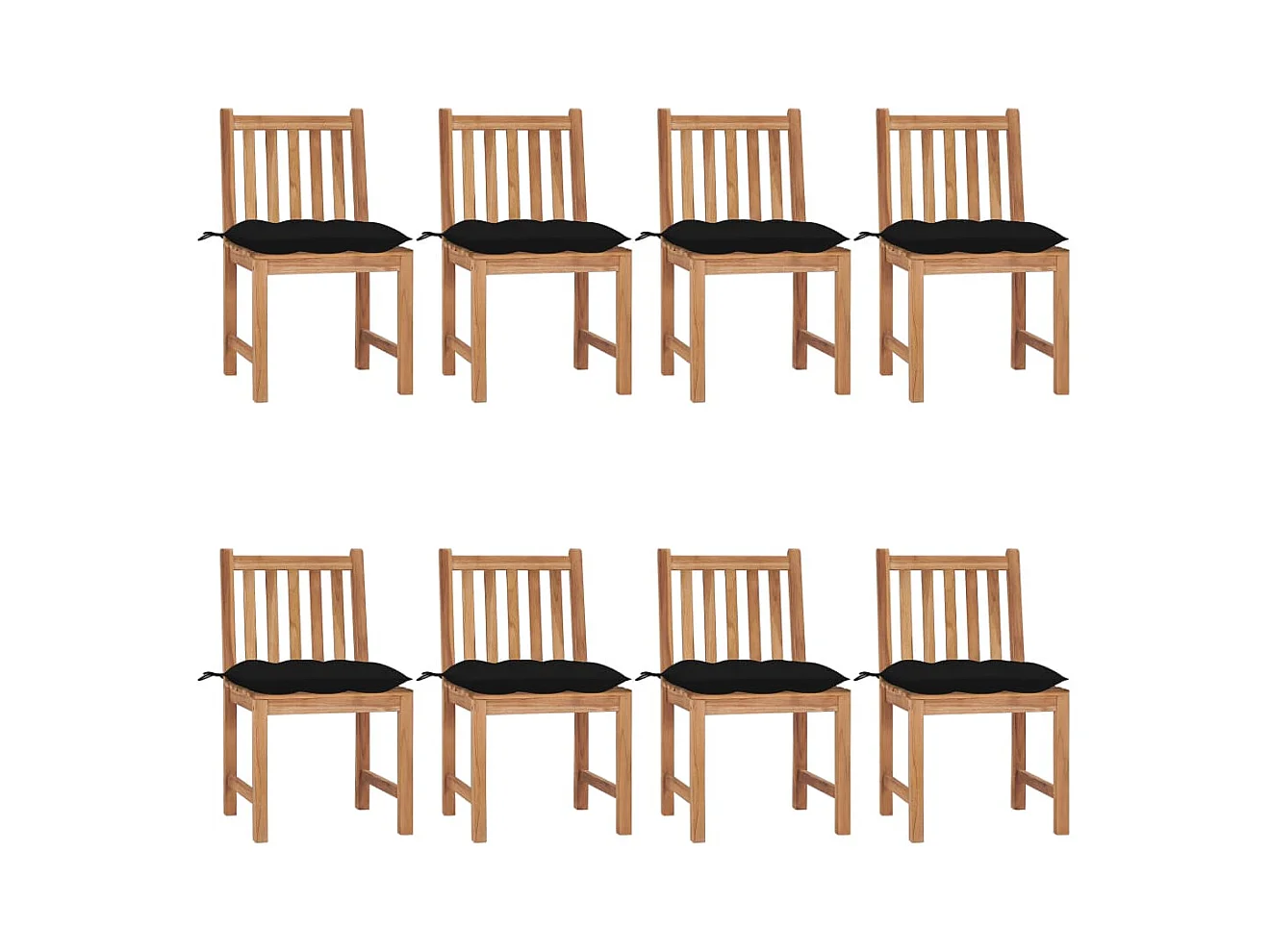 Juego de 8 sillas de jardín apilables con cojines de teca maciza
