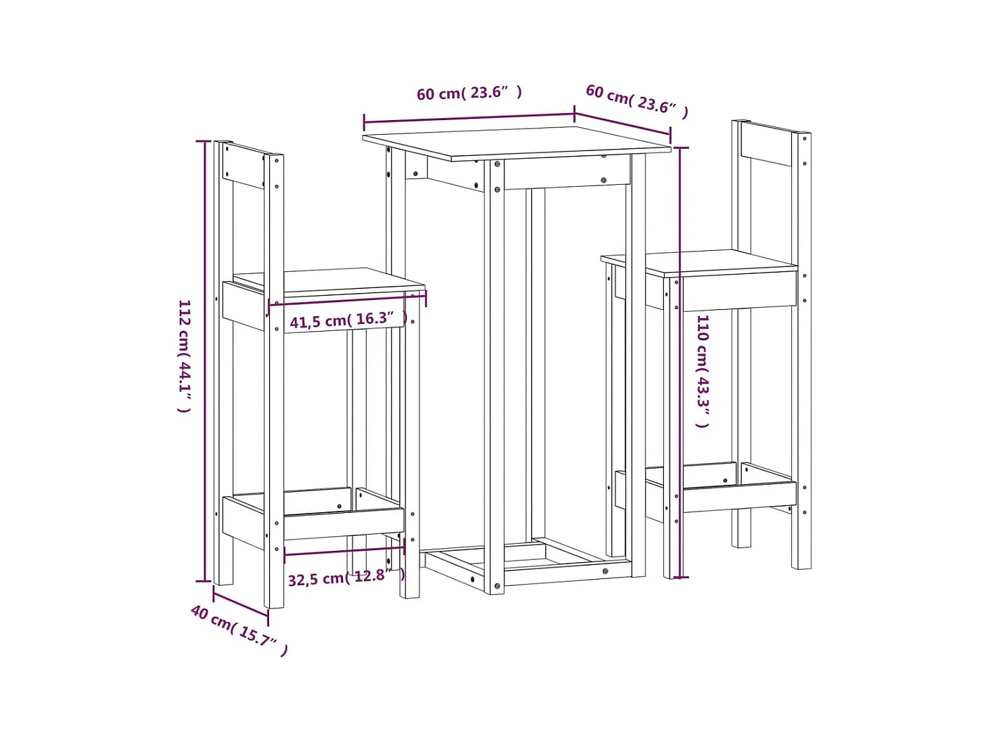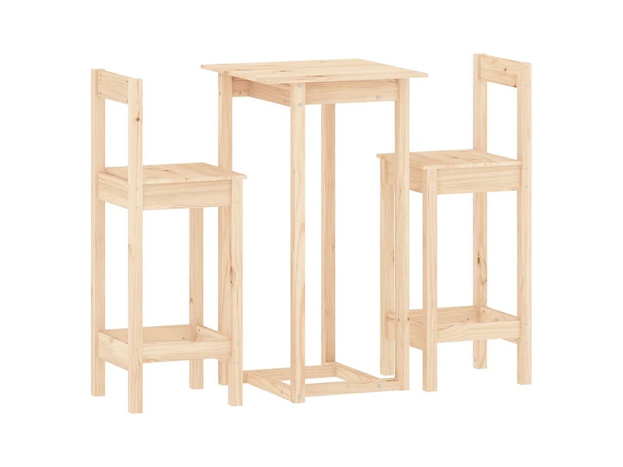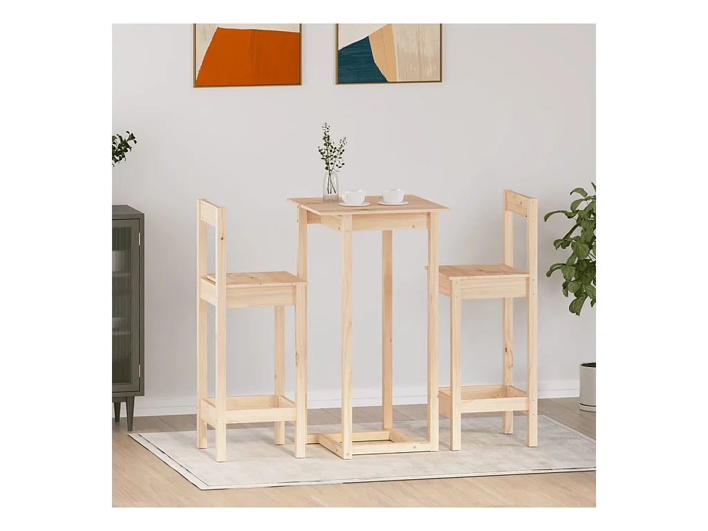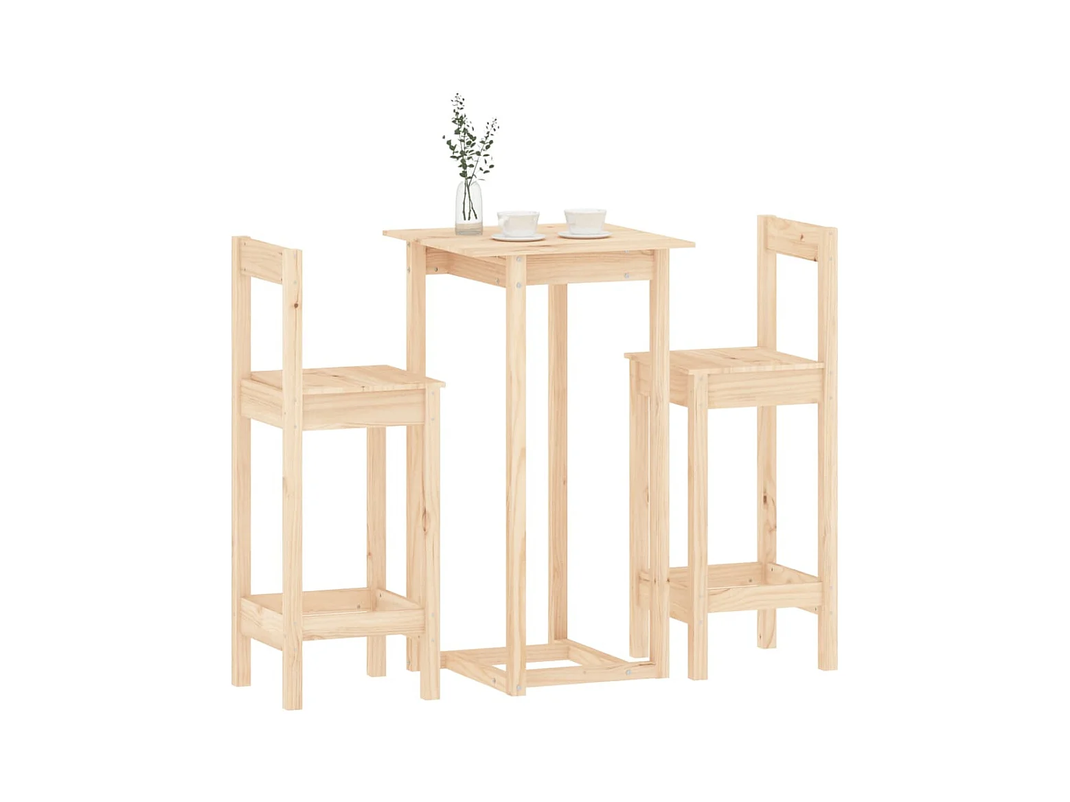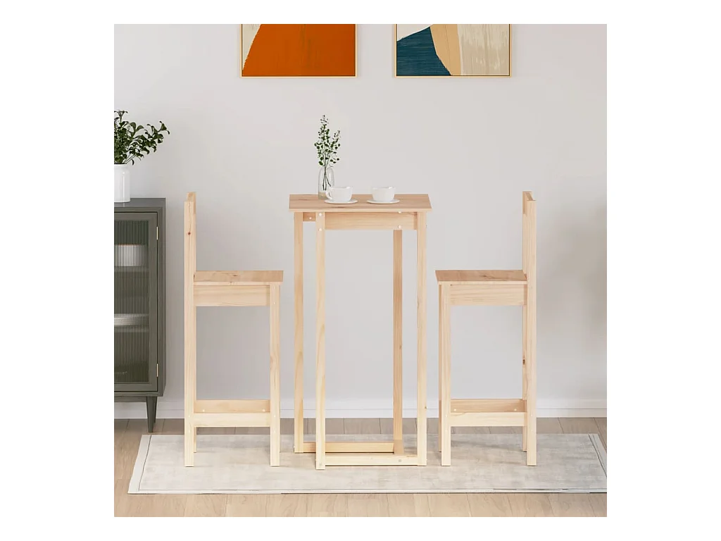 Juego de bar de 3 piezas Madera maciza reciclada y cuero auténtico.