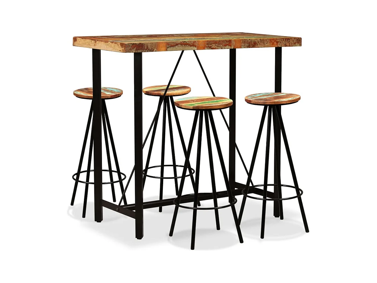 Juego de bar de 5 piezas Madera maciza reciclada y cuero auténtico.