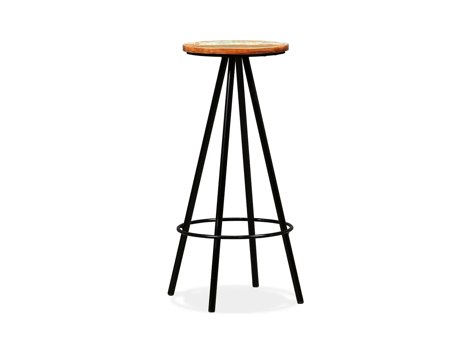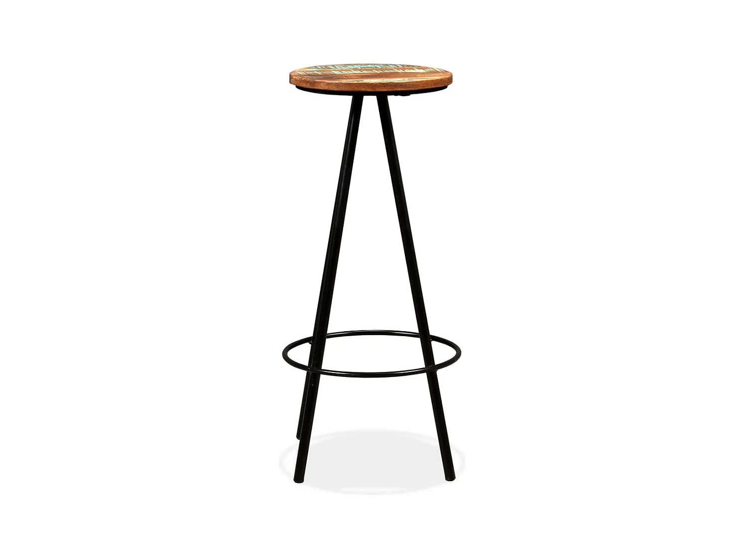 Juego de bar de 3 piezas Madera maciza reciclada y cuero auténtico.