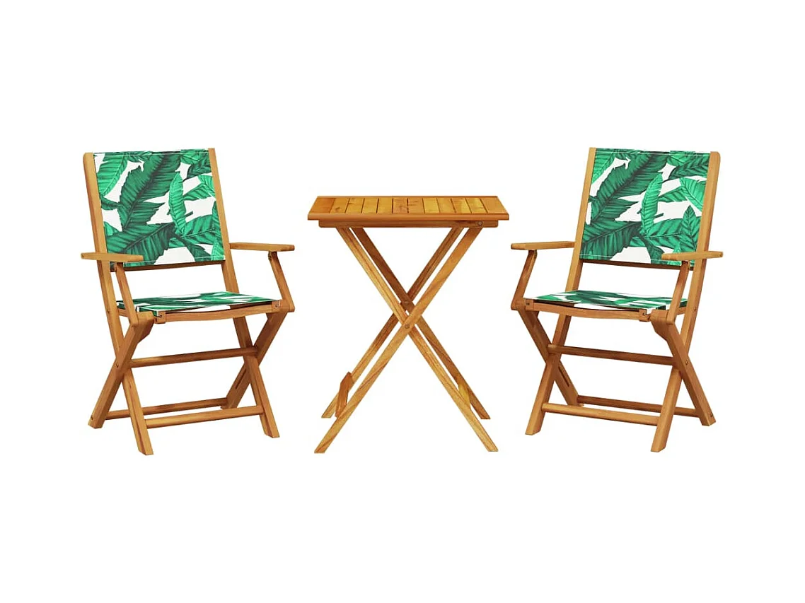 Juego de bistro de 3 piezas tela madera maciza estampado hojas ES296407