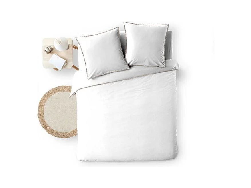 Juego de cama - 220 x 240 cm - 100% Percal Acabado encaje - Tiza