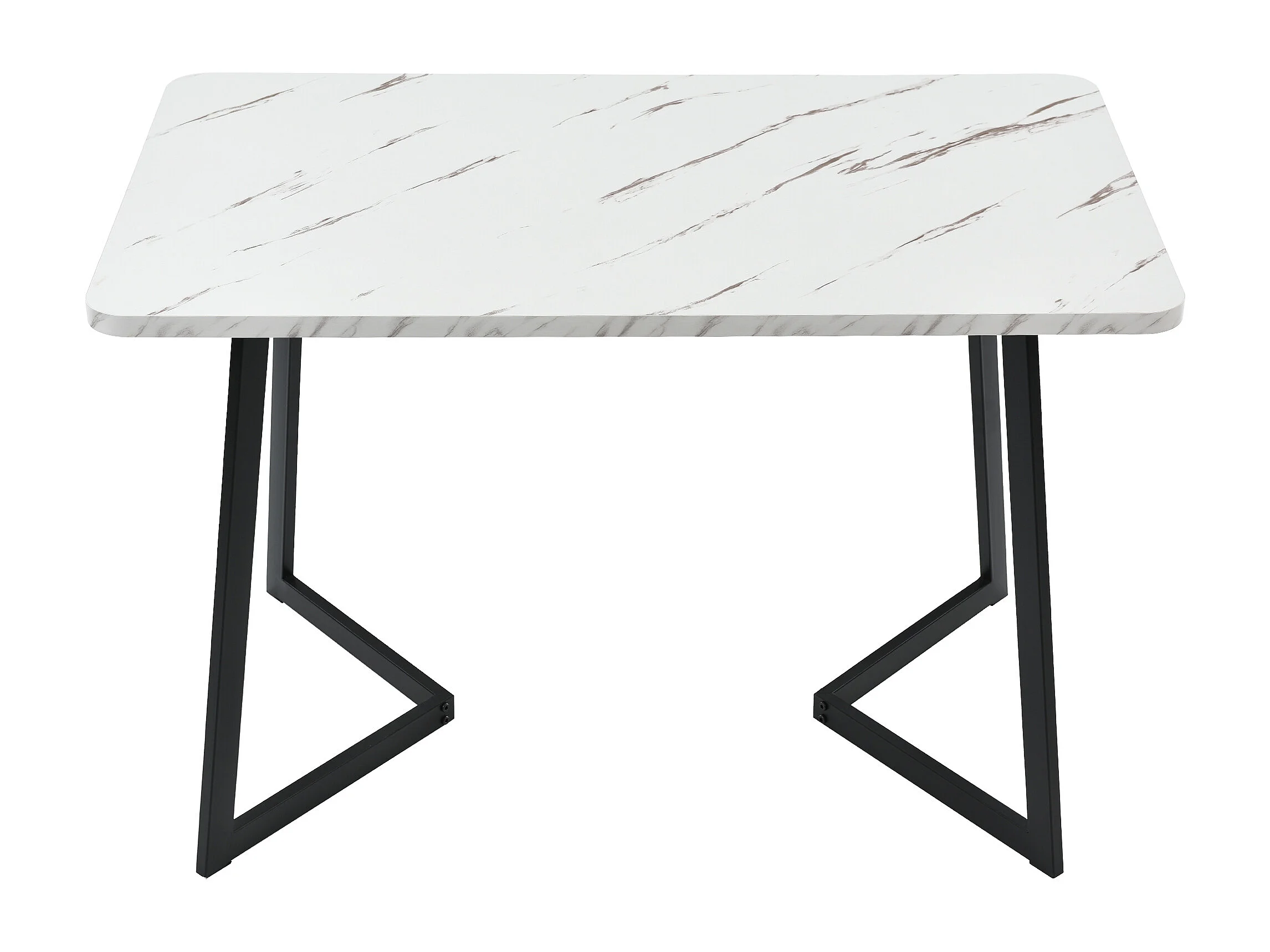 Juego de comedor de 5 piezas de 117 x 68 cm con efecto mármol, mesa de MDF, patas de metal y sillas de terciopelo negro.