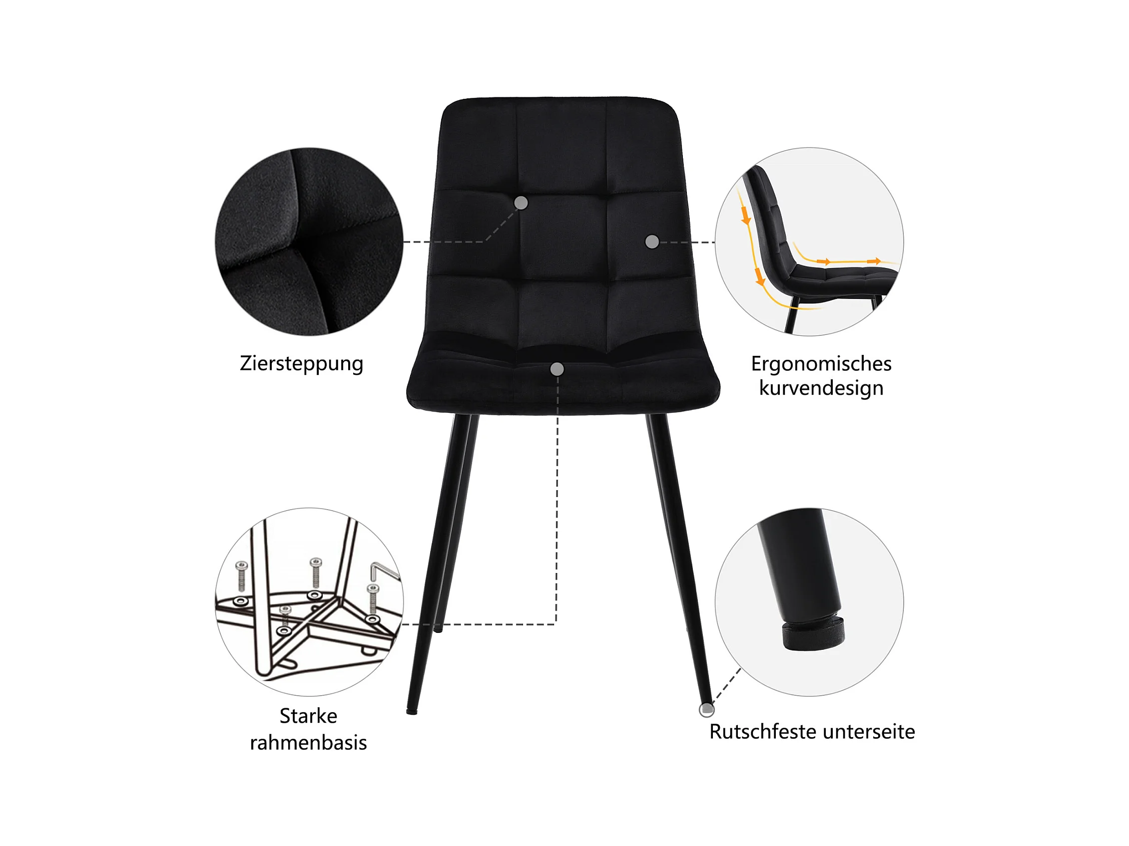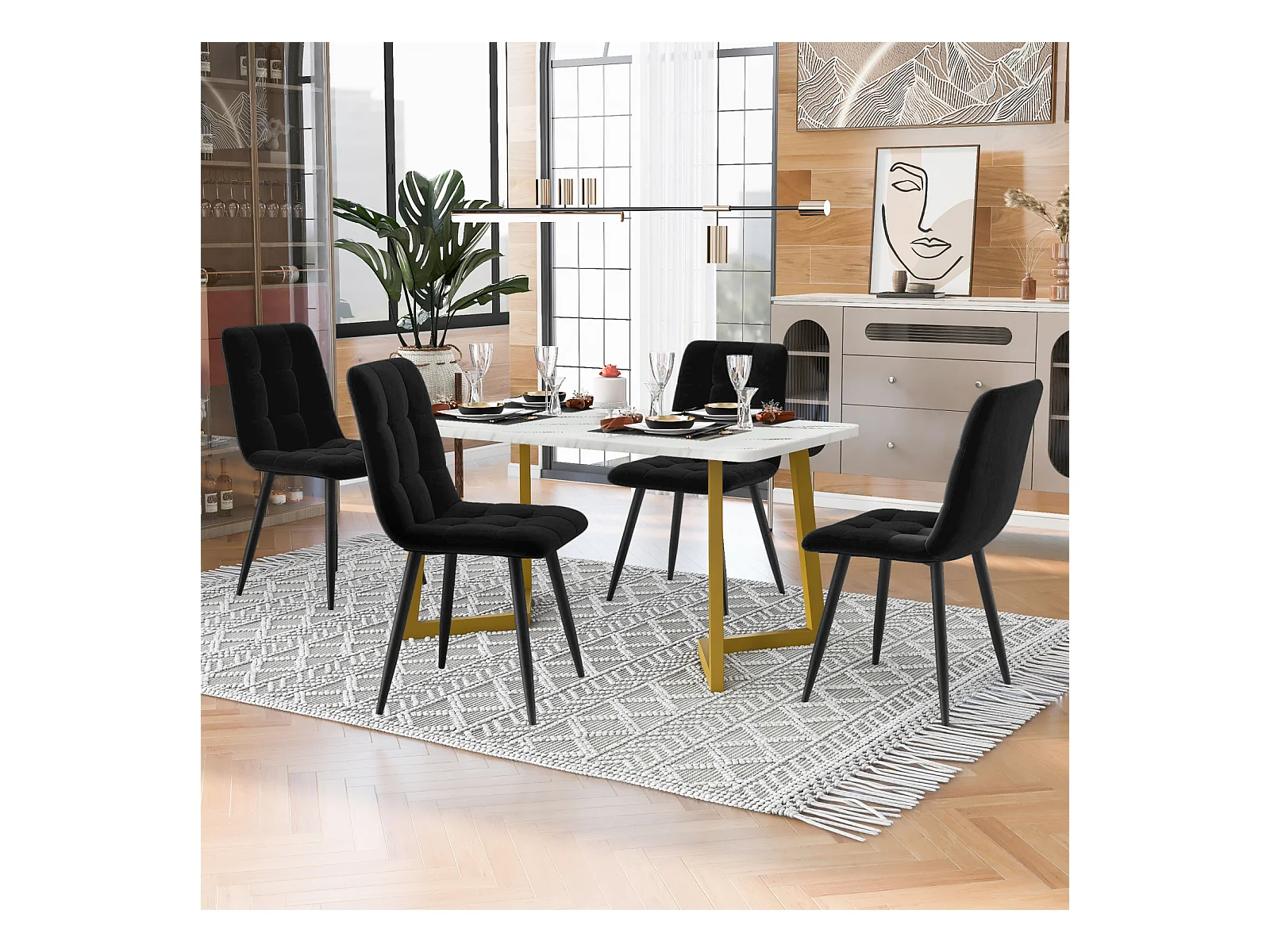 Conjunto de comedor de 5 piezas: Mesa rectangular moderna con tablero de MDF + 4 sillas de terciopelo negro, patas negras resistentes