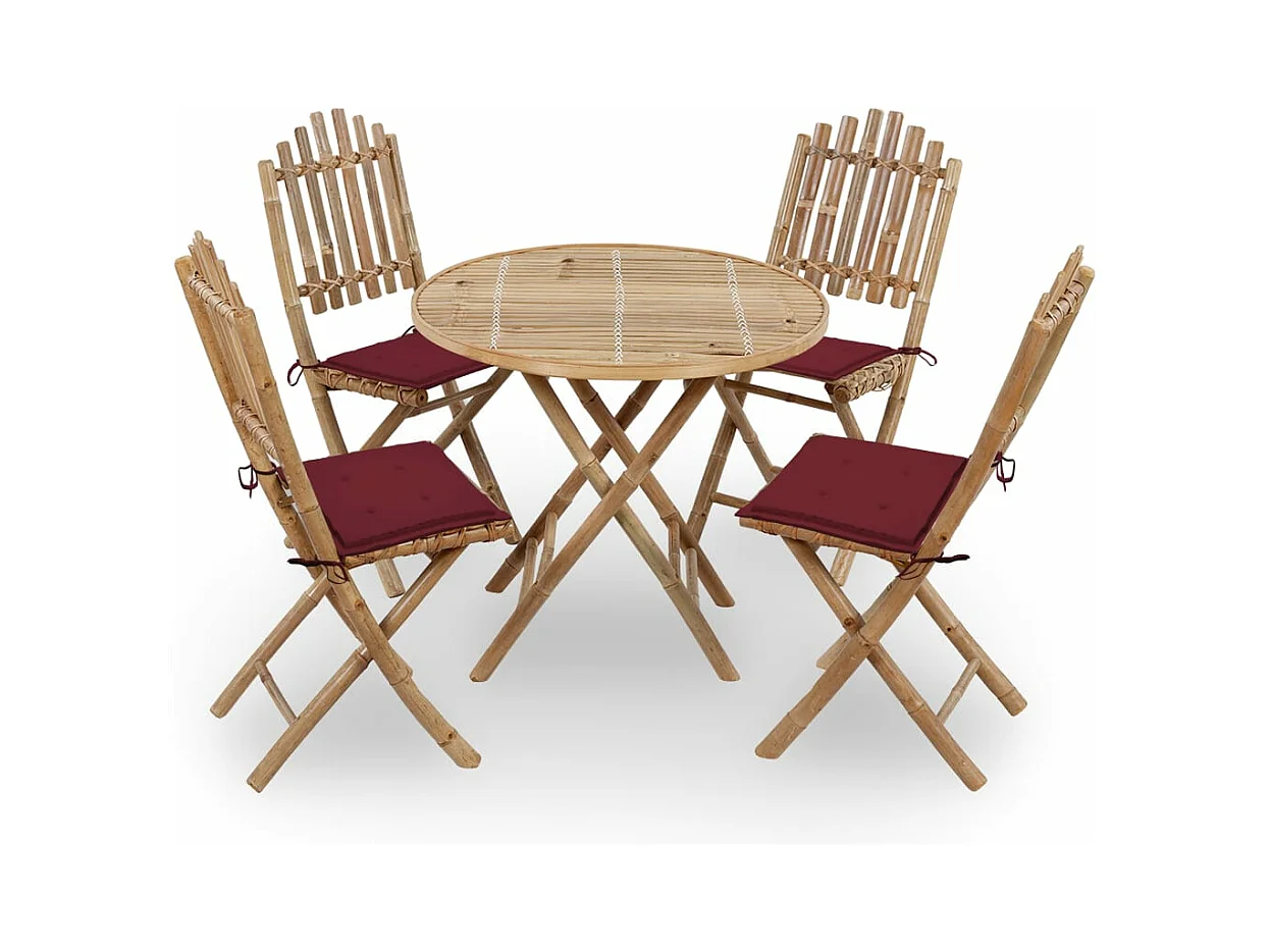 Juego de comedor de exterior plegable de 5 piezas con cojines de bambú 02_0014700