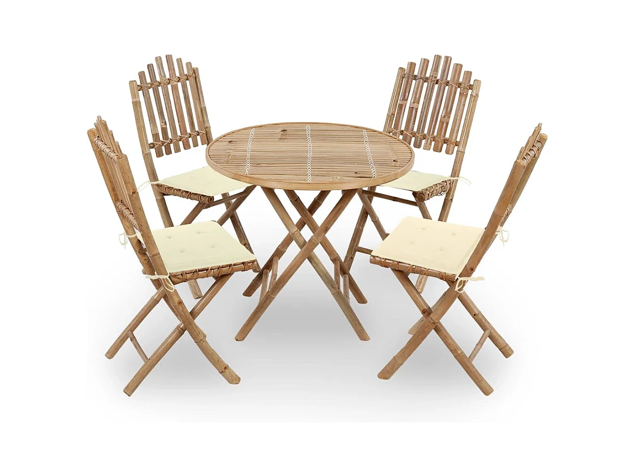 Juego de comedor de exterior plegable de 5 piezas con cojines de bambú 02_0014700