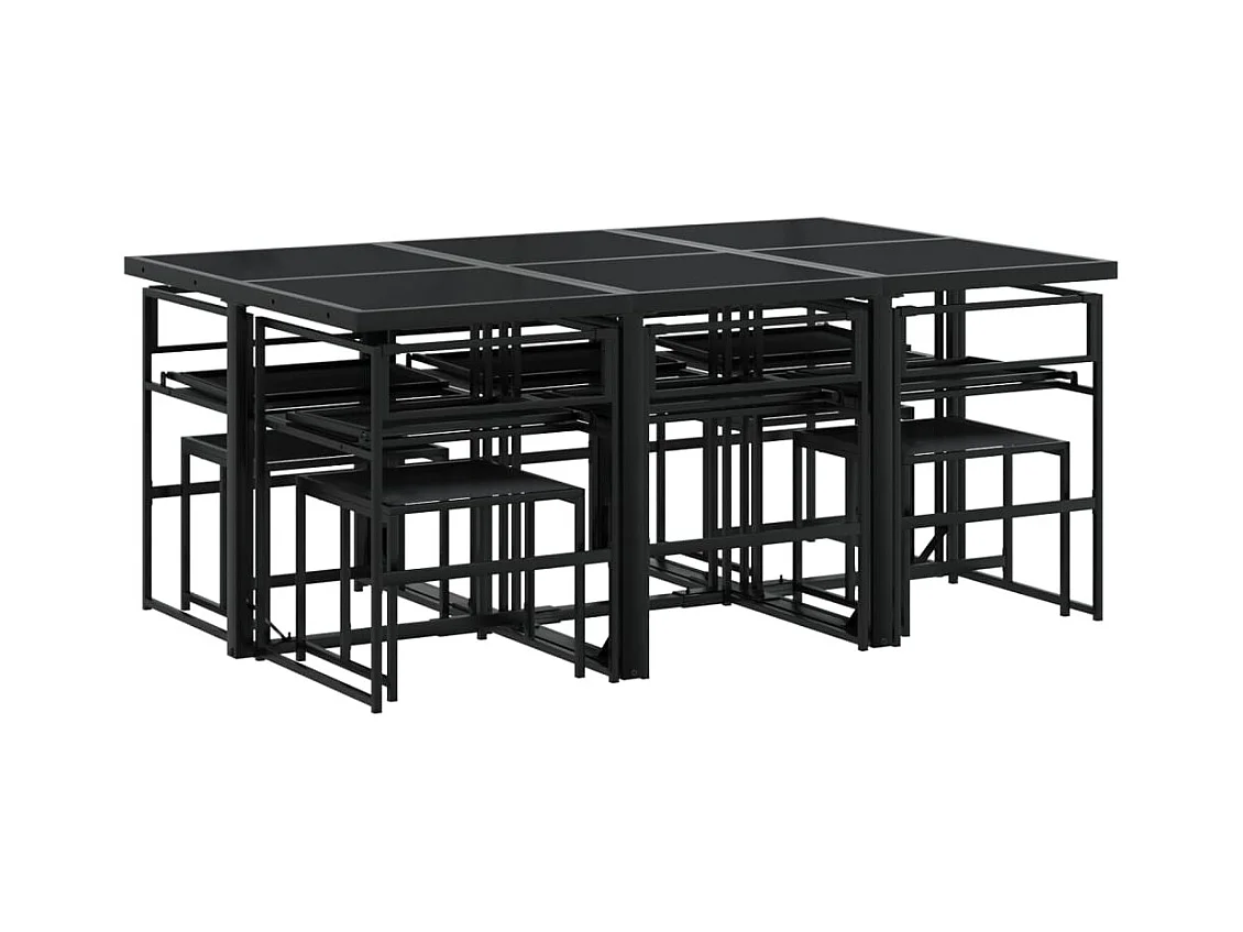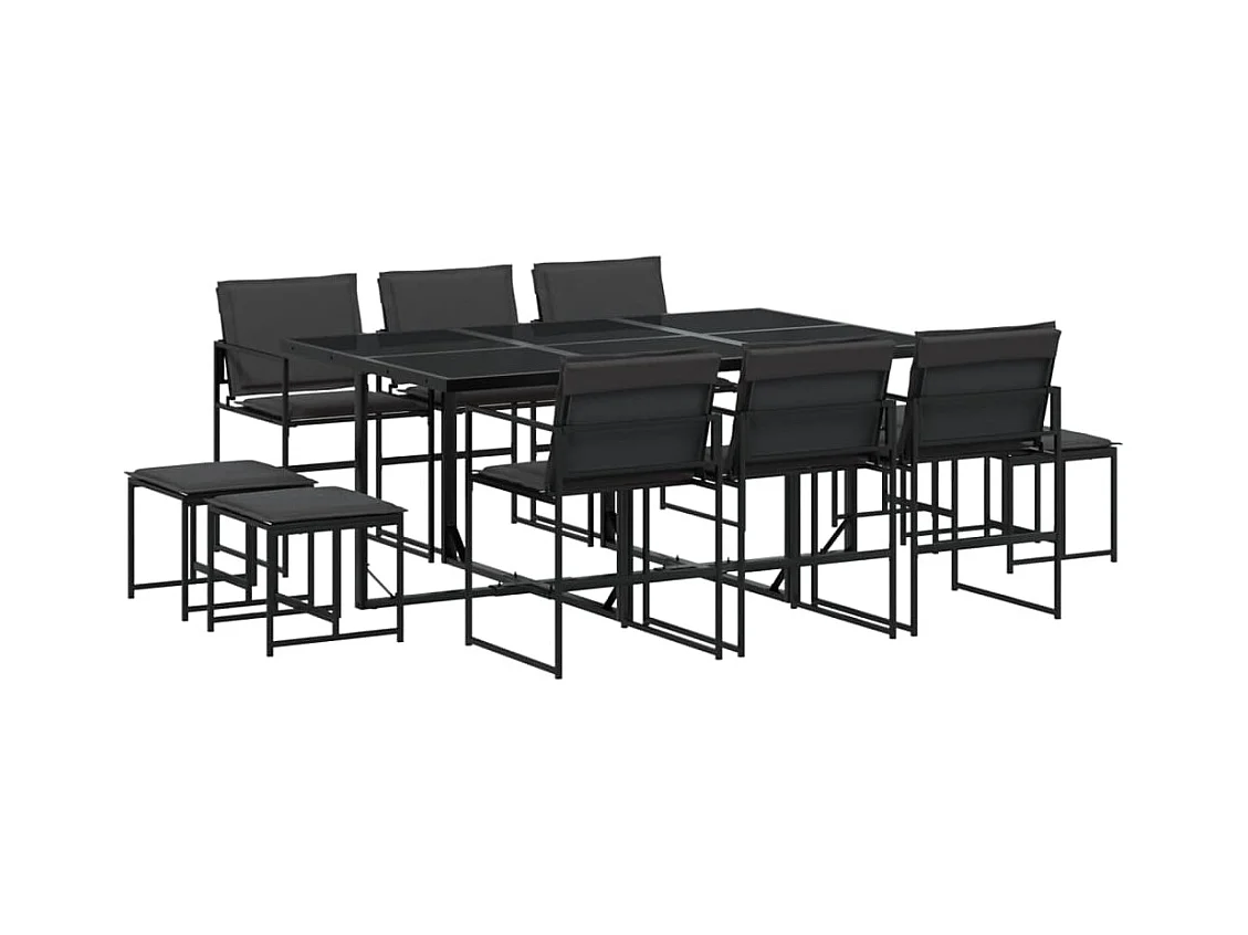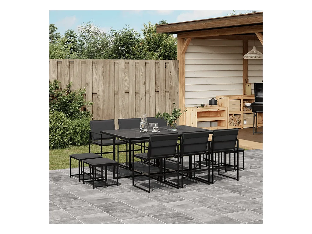 Juego de comedor de jardín 11 piezas con cojines textileno negro