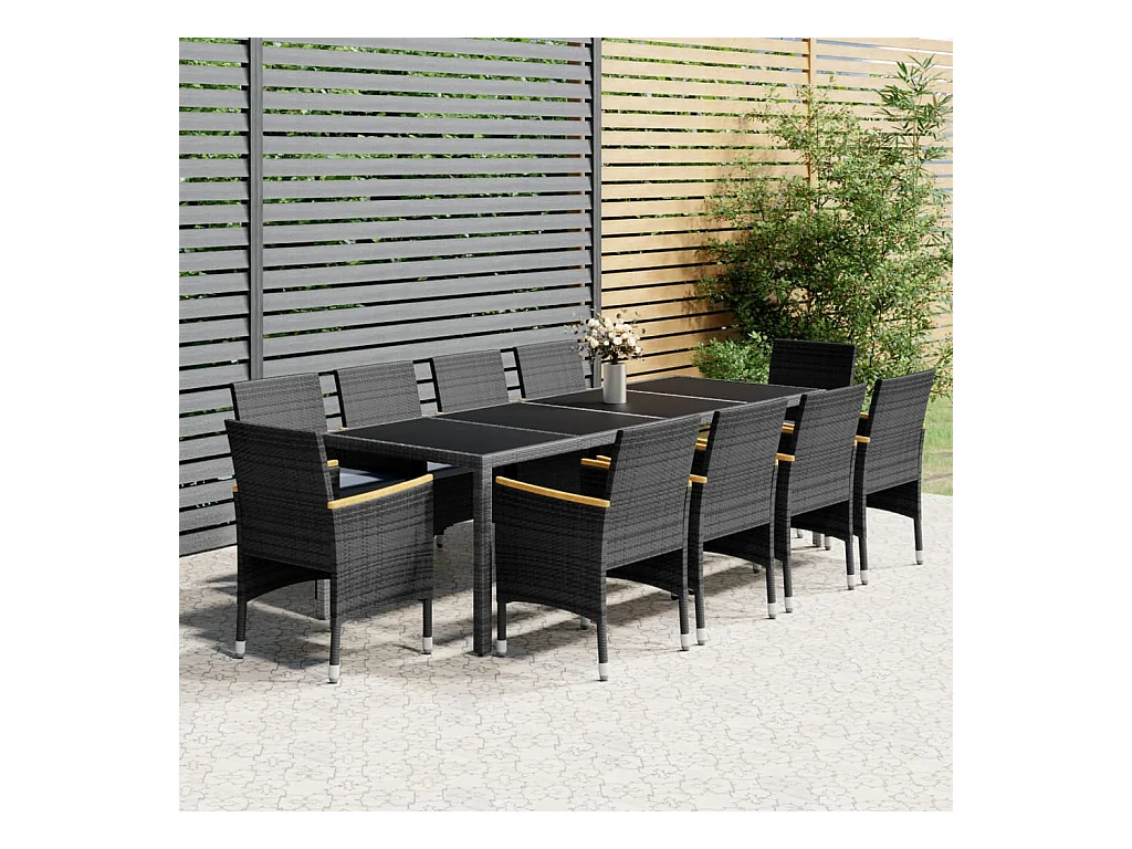 Juego de comedor de jardín 11 piezas ratán sintético gris