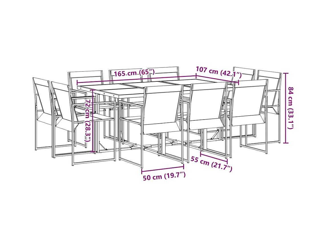 Conjunto de comedor de jardín de 11 piezas con cojines negros y grises 02_0014732