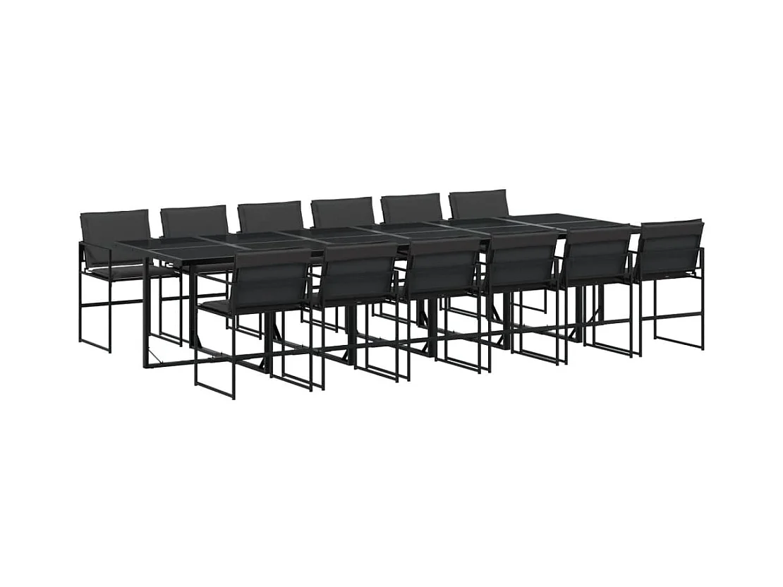 Juego de comedor de jardín 13 piezas con cojines textileno negro